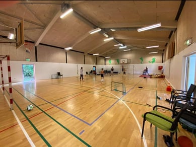 Vi har vores egen vindmølle og en stor multi sportshal og auditorium på stedet.