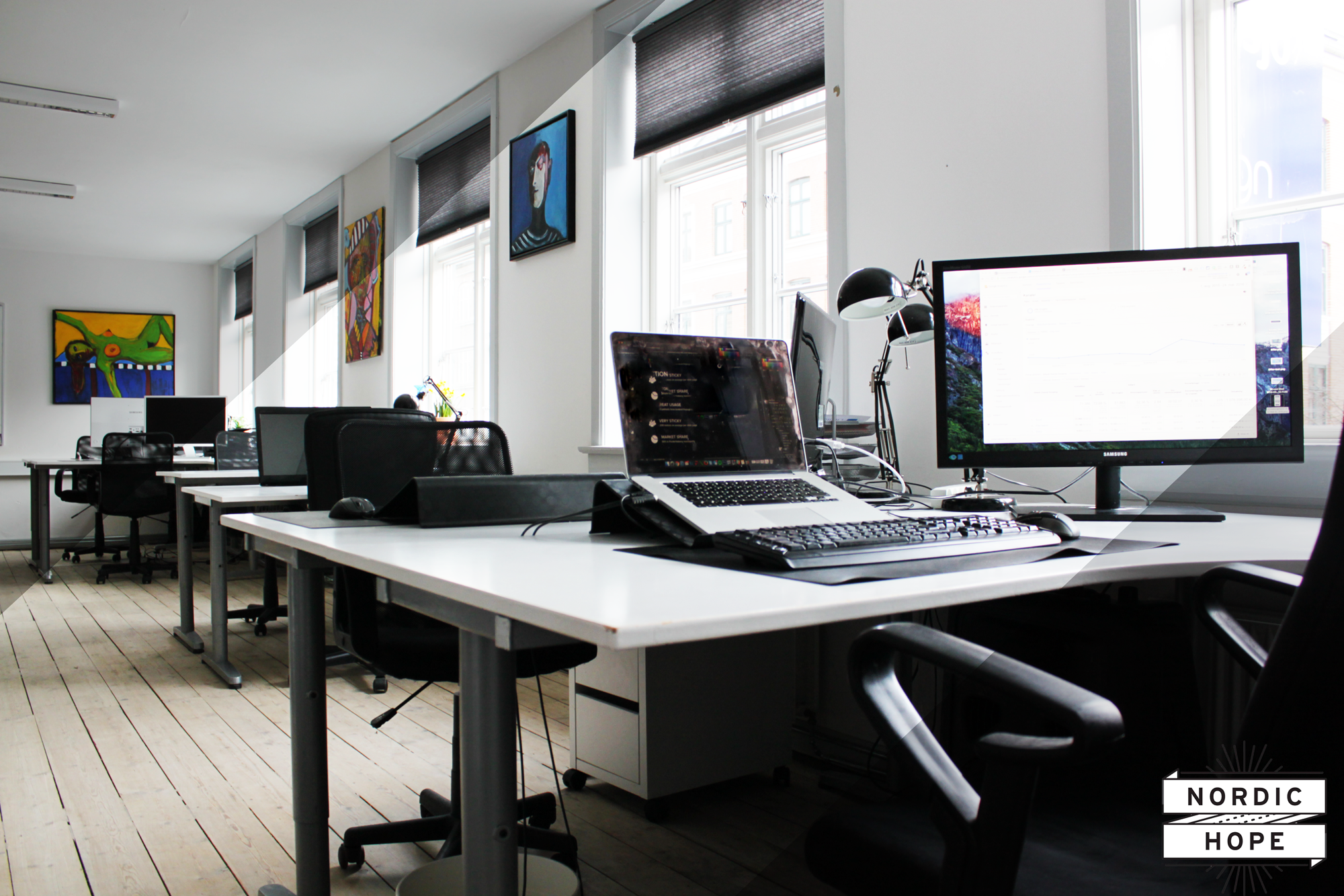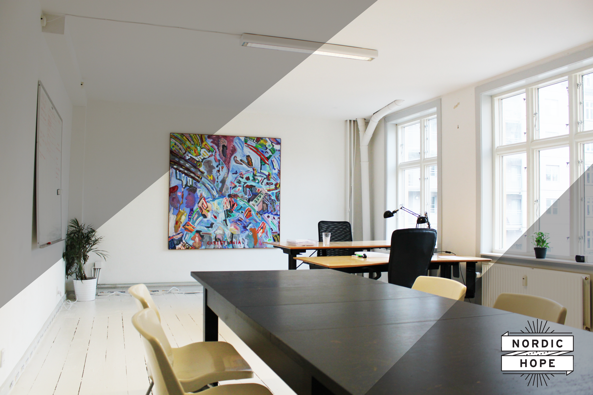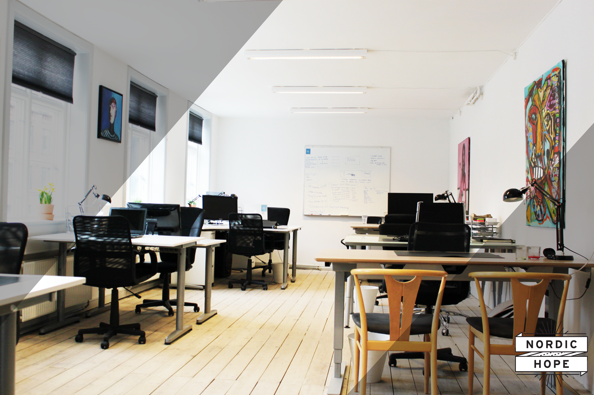 Kontorfællesskabet er ca. 300 kvm, som inkluderer: 28 kontorpladser, fordelt på henholdsvis 2-3 lukkede kontorer og fællesarealer.
