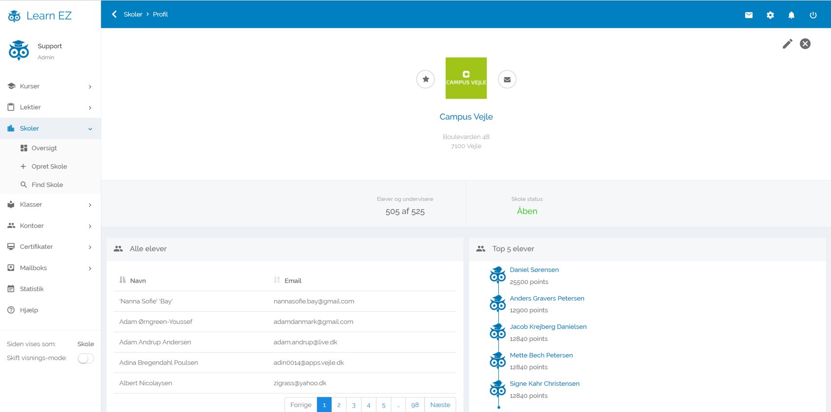 - Kursister kan sende beskeder til dig, support eller hinanden