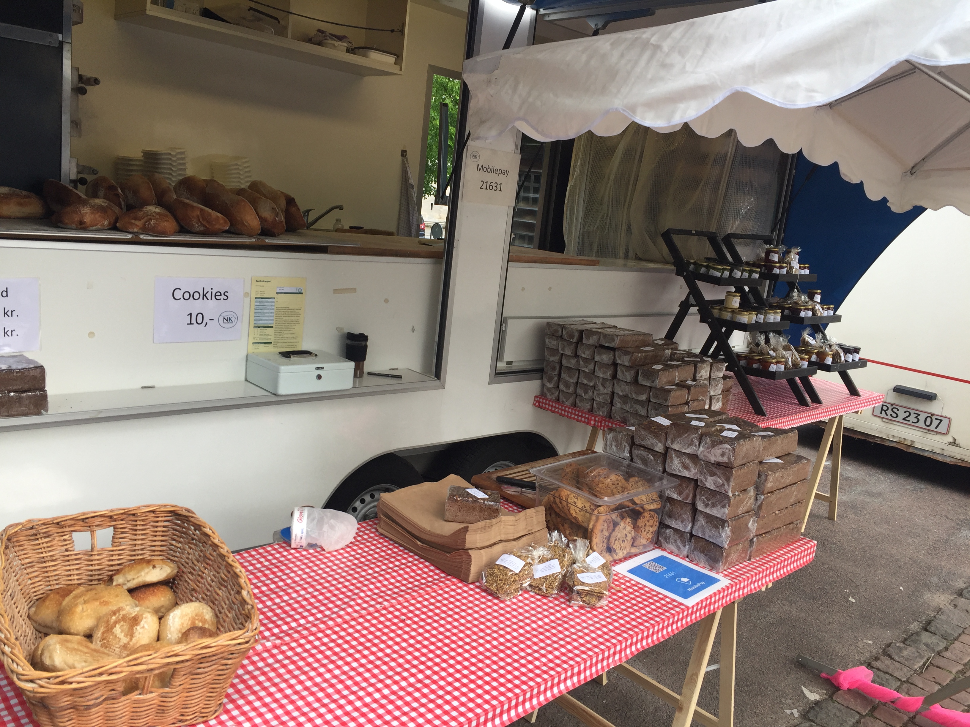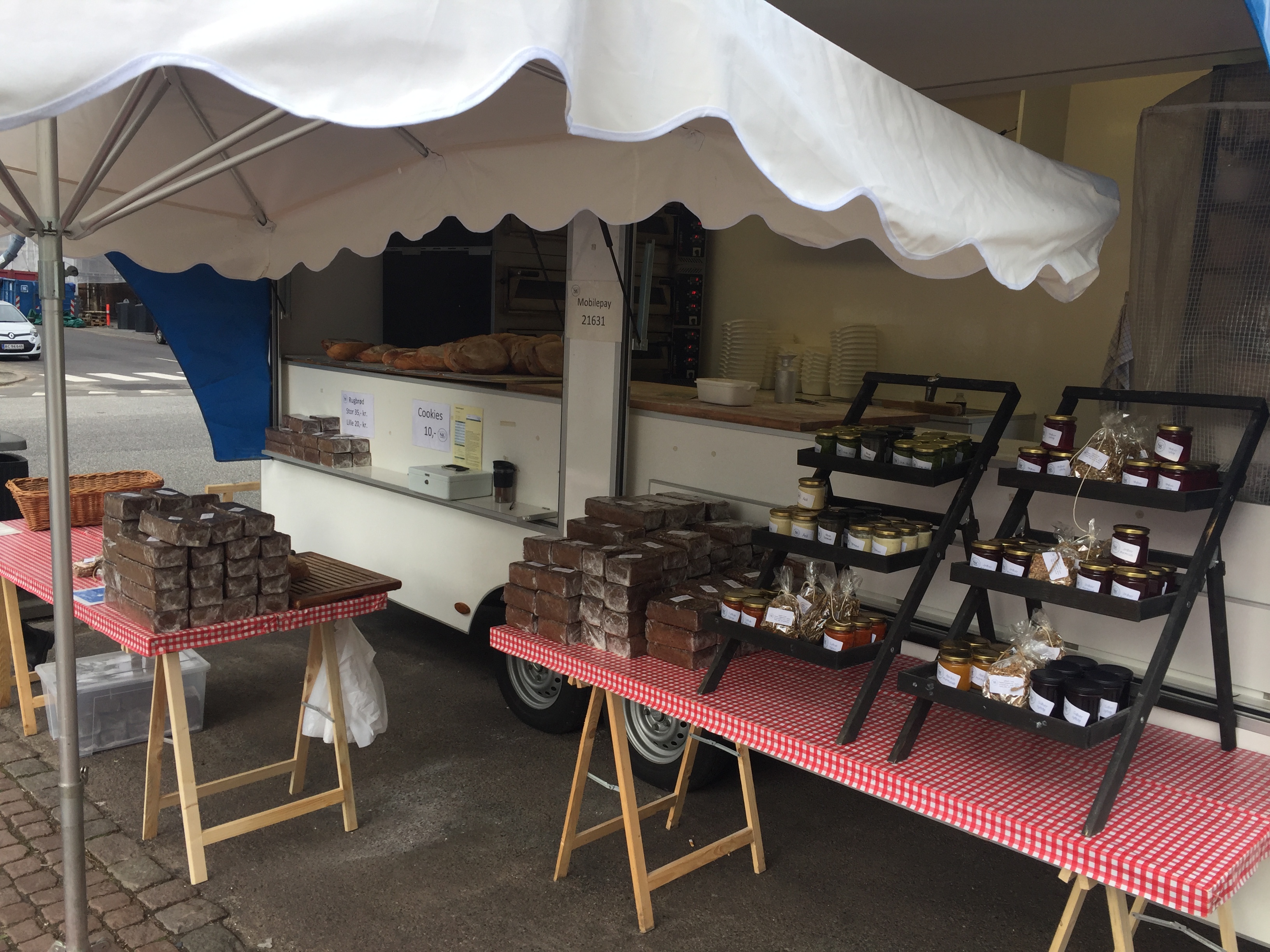 Rigtig god brød forretning på hjul - Her er forretningen til dig der gerne vil i gang - her er fast kundekreds og mange muligheder for at udvide forretningen. Ideen er genial, der bages brød direkte på torvet i Århus. Vi har kun været afsted onsdag og lørdag, men der findes mange andre markeder man kan tage afsted til. Her er altid mange kunder og de elsker friskbagt brød, og andre produkter uden kunstige tilsætningsstoffer.