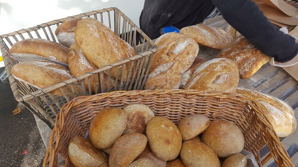 Langtids hævet surdejs brød direkte fra stenovn - pesto - diverse marmelader og syltede frugter - Langtids hævet rugbrød lavet med surdej - Chokolade Cookies. Forskellige sæson betonede varer ex. brunkager til jul.