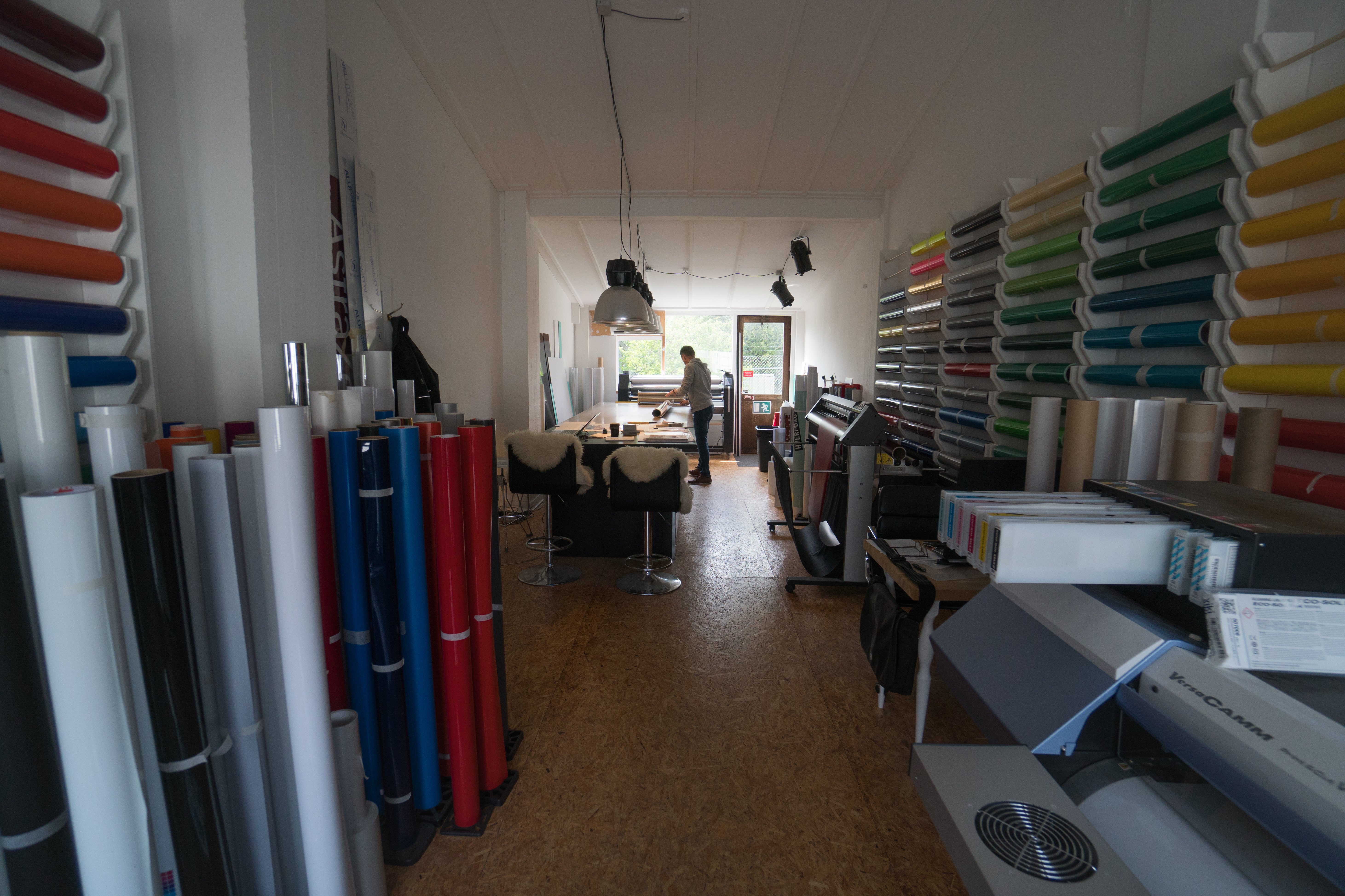 En stor del af omsætningen er fra skilte- og printproduktion i samarbejde med indretningsarkitekter og ejendomsselskaber, til industribygninger, boliger og bilflåder.