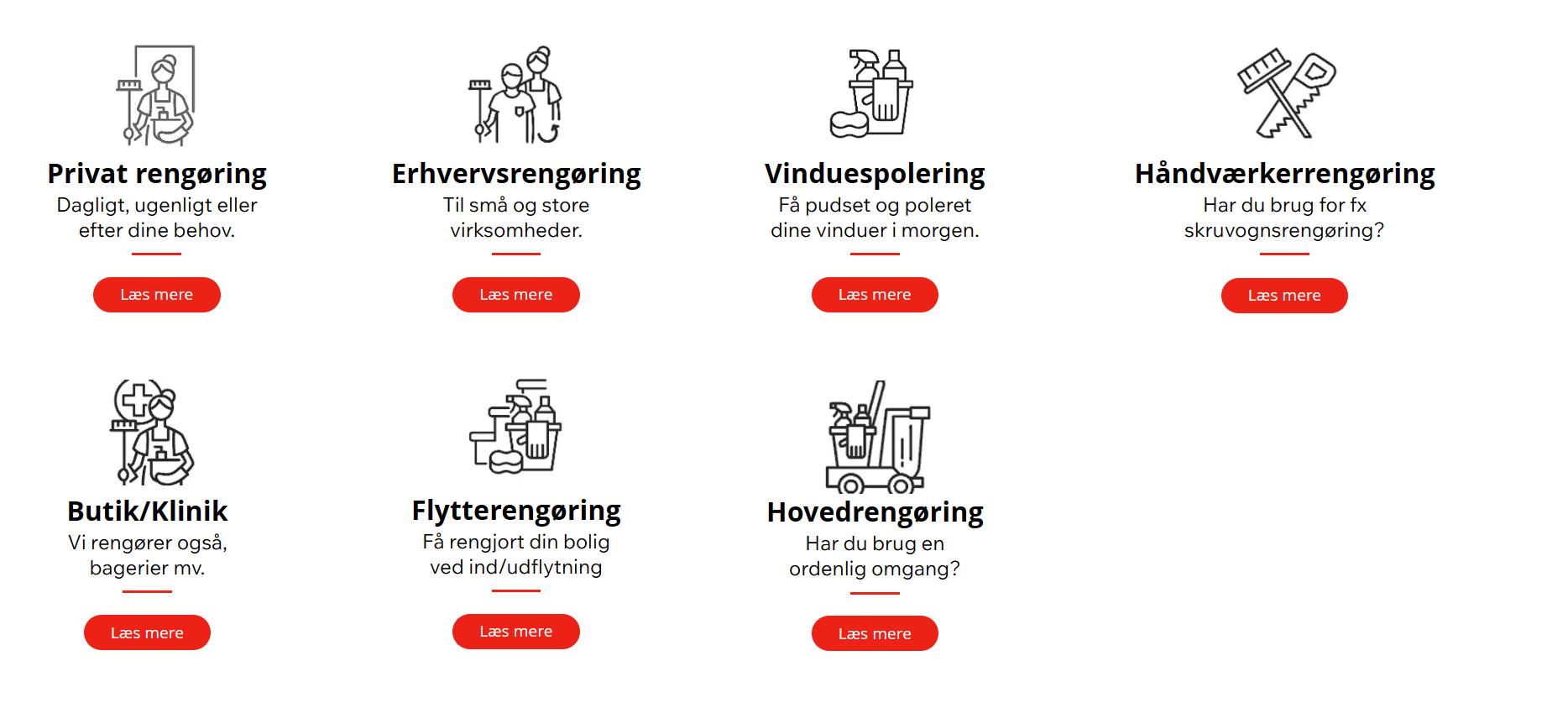 Personlig service, mulighed for rengøring døgnet rundt, konverterbar hjemmeside samt eksisterende kundekreds/ kontrakt med en stor erhvervskunde.