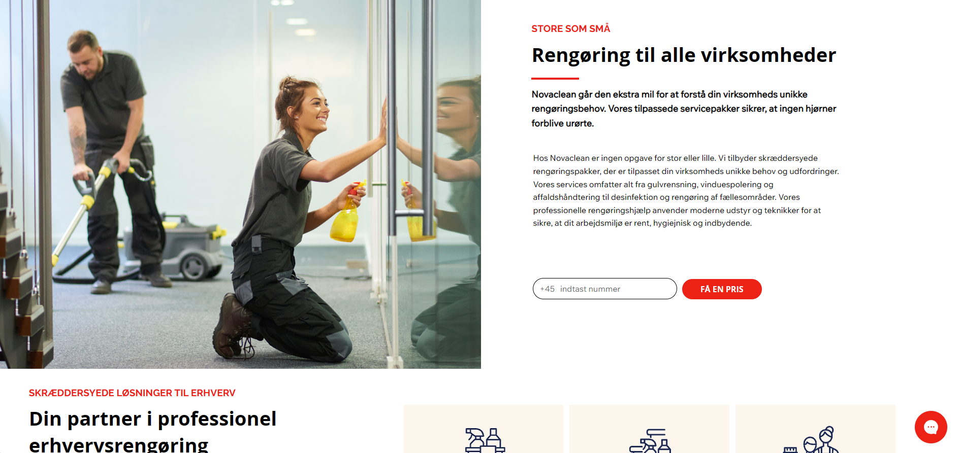 Anskaffelse af kunder via Google - fastholdelse af kunder i faste rengøringsaftaler - tilgængelighed/ad-hoc opgaver døgnet rundt.