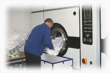 vaskemaskiner der bruger el., dampgenerator der kører på fyringsolie, rulle til duge der der bruger el. buksepresser der bruger damp, stryge border der bruger el og damp.