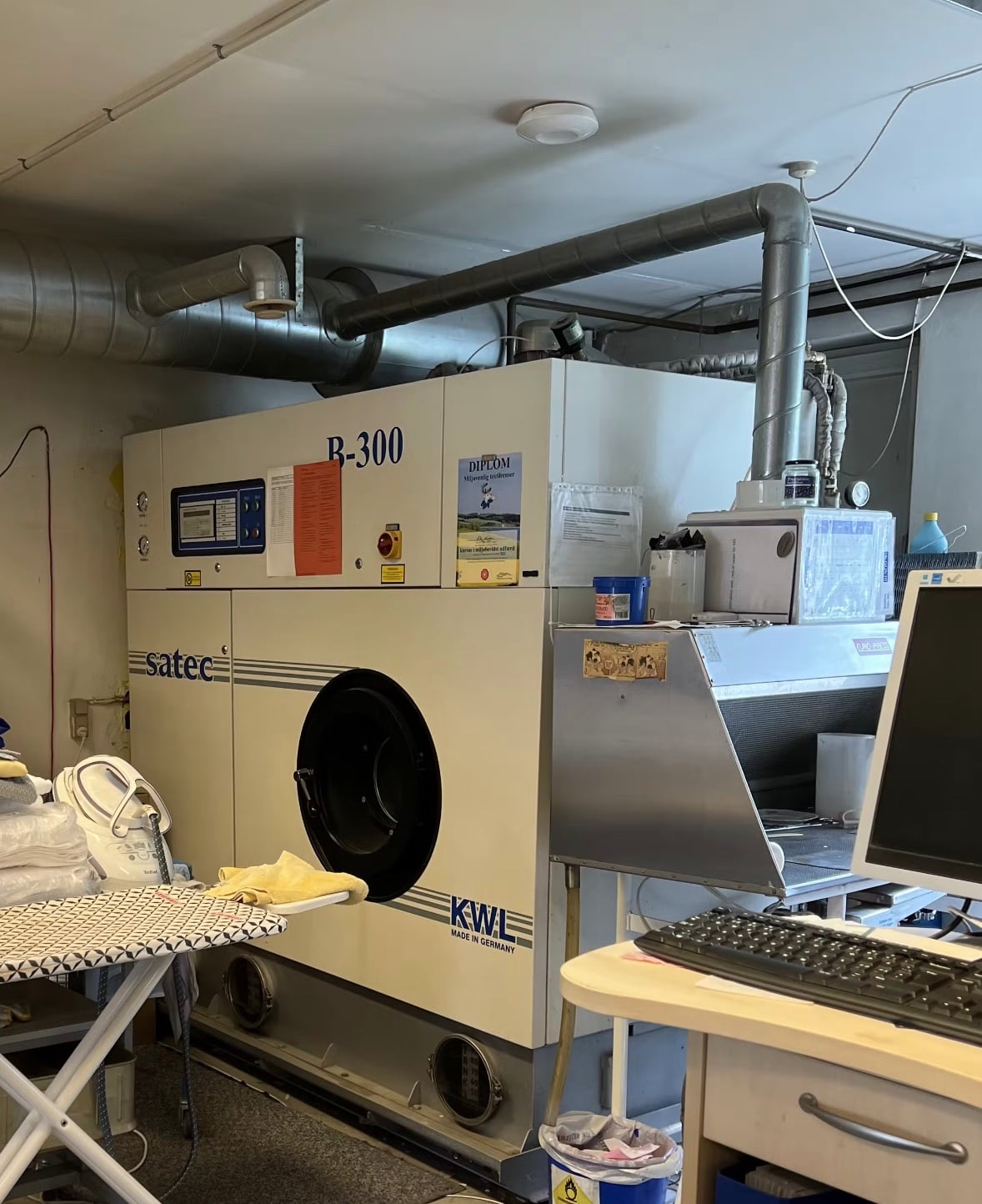 Butikken består af alle maskiner for at udføre opgaverne, rensemaskine, vaskemaskiner (også vådrens) tumblere, rulle til duge m.v.