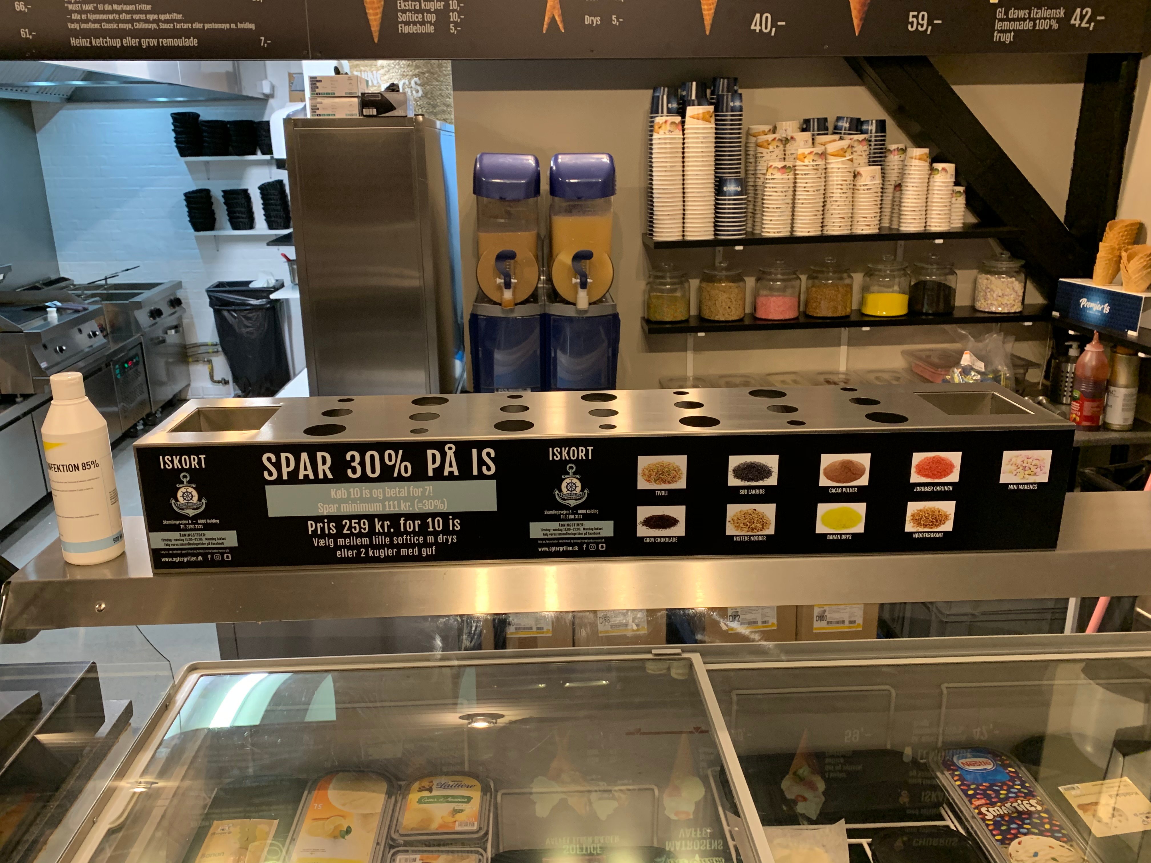Komplet renoveret med nye maskiner og installationer i 2018 og 2020. Butikken ligger med udsigt til det skønne Kolding fjord og er en ret befærdet og besøgt område i sæsonen.