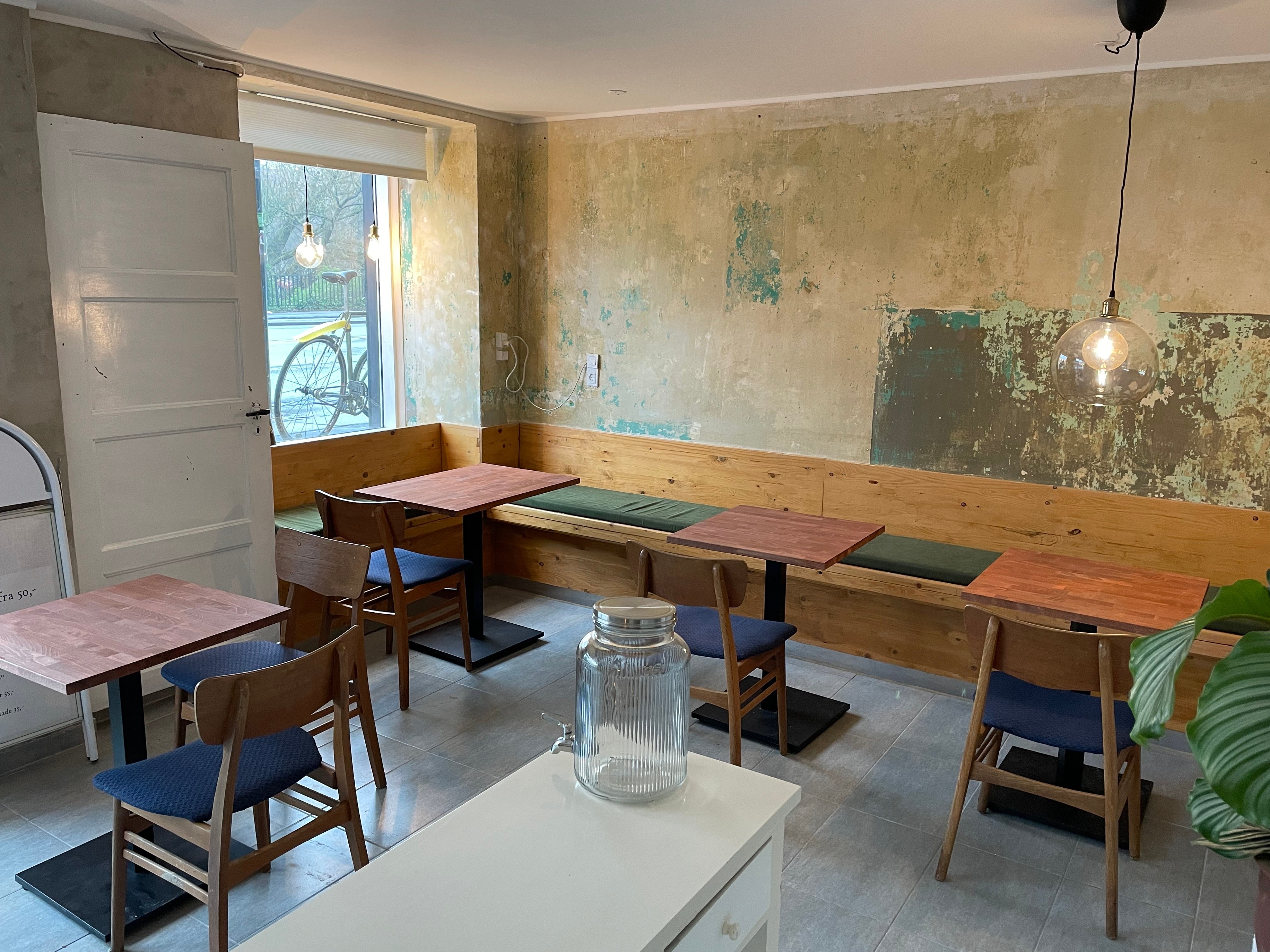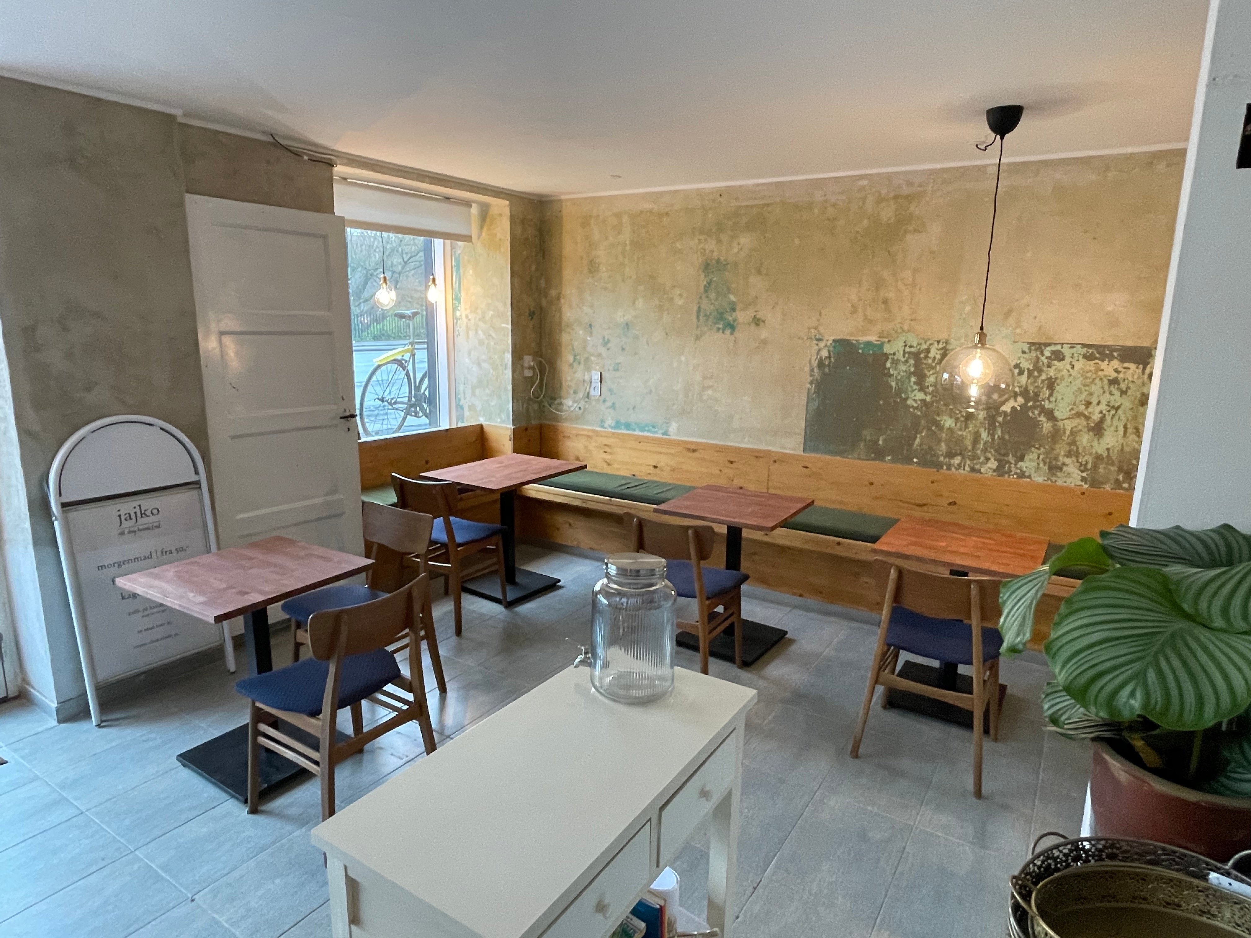 Caféen har plads til 18 spisende gæster med den nuværende indretning og lejemålet er på 50 kvadratmeter.