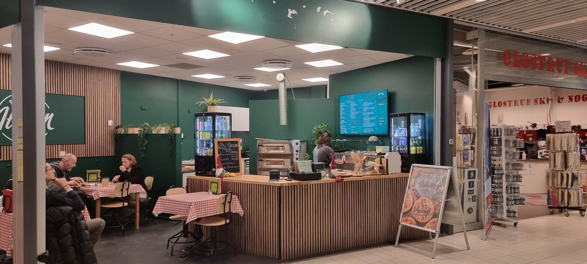 Pizzeria med unik beliggenhed i Glostrup centeret lige foran Føtex.