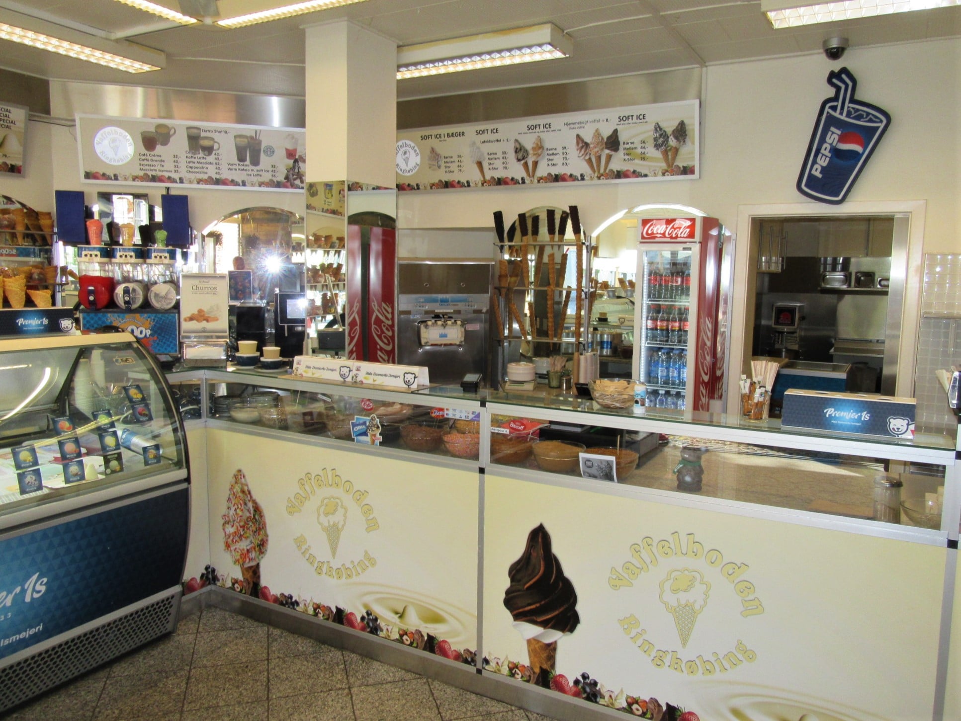 Salg af is i hjemmebagte vafler, softice, kaffe, burgere, pølser m.v.
