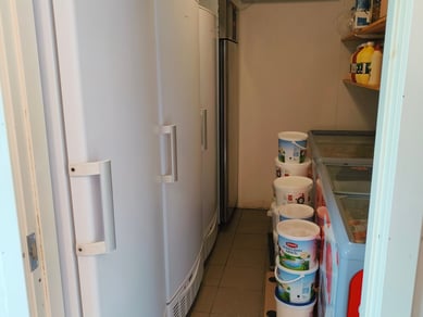 Der er et godt indrettet køkken bagved, fint privat kontor og badeværelse med vask og tør. Udendørs er der et handicap kunde toilet, som kommunen giver et tilskud til driften af.