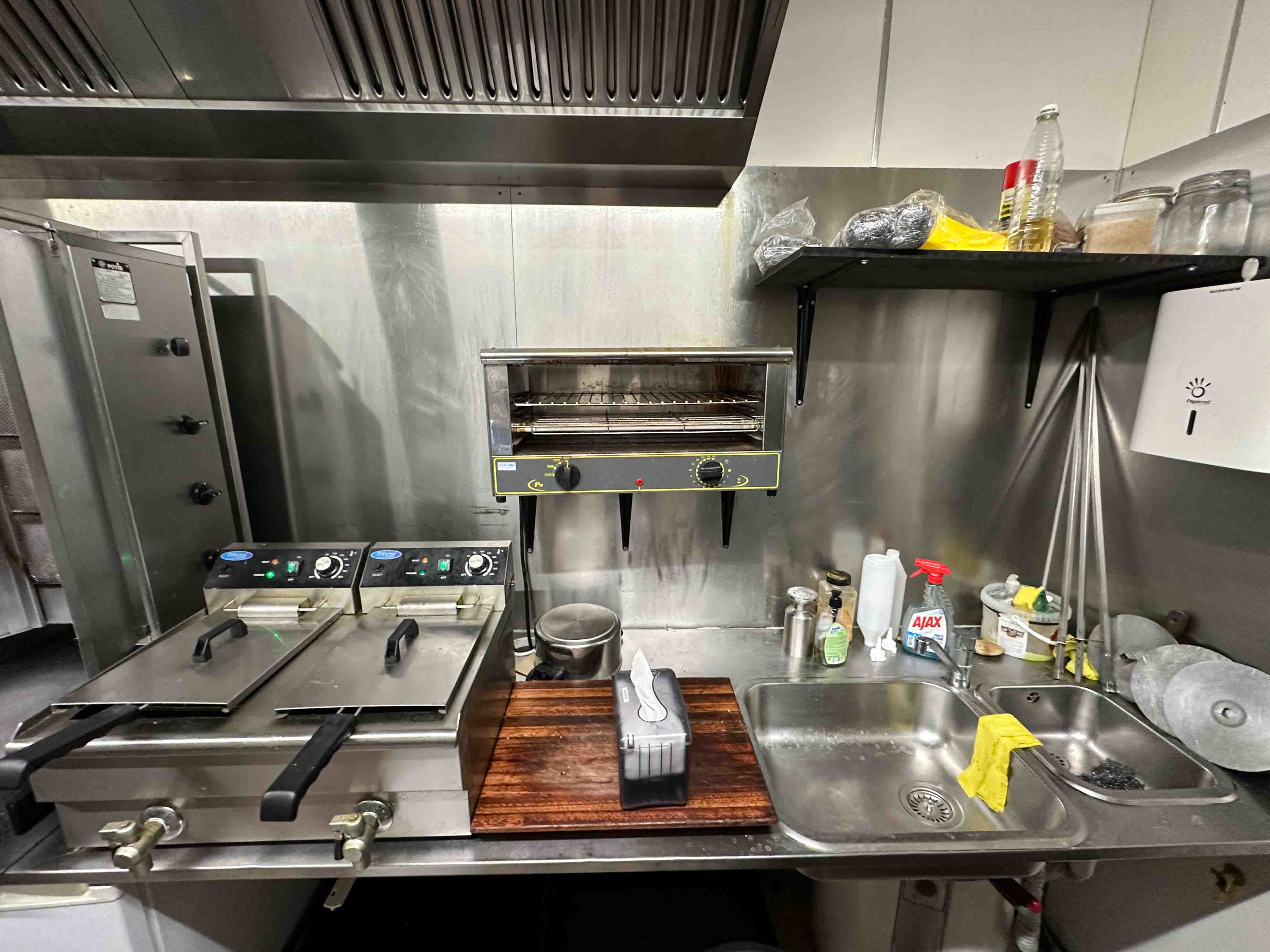 Flot sted at kunne levere dejlig mad til dine kunder) Stort køkken (ydermål 5 meter lang, 3 meter bred, 3,2 meter høj)