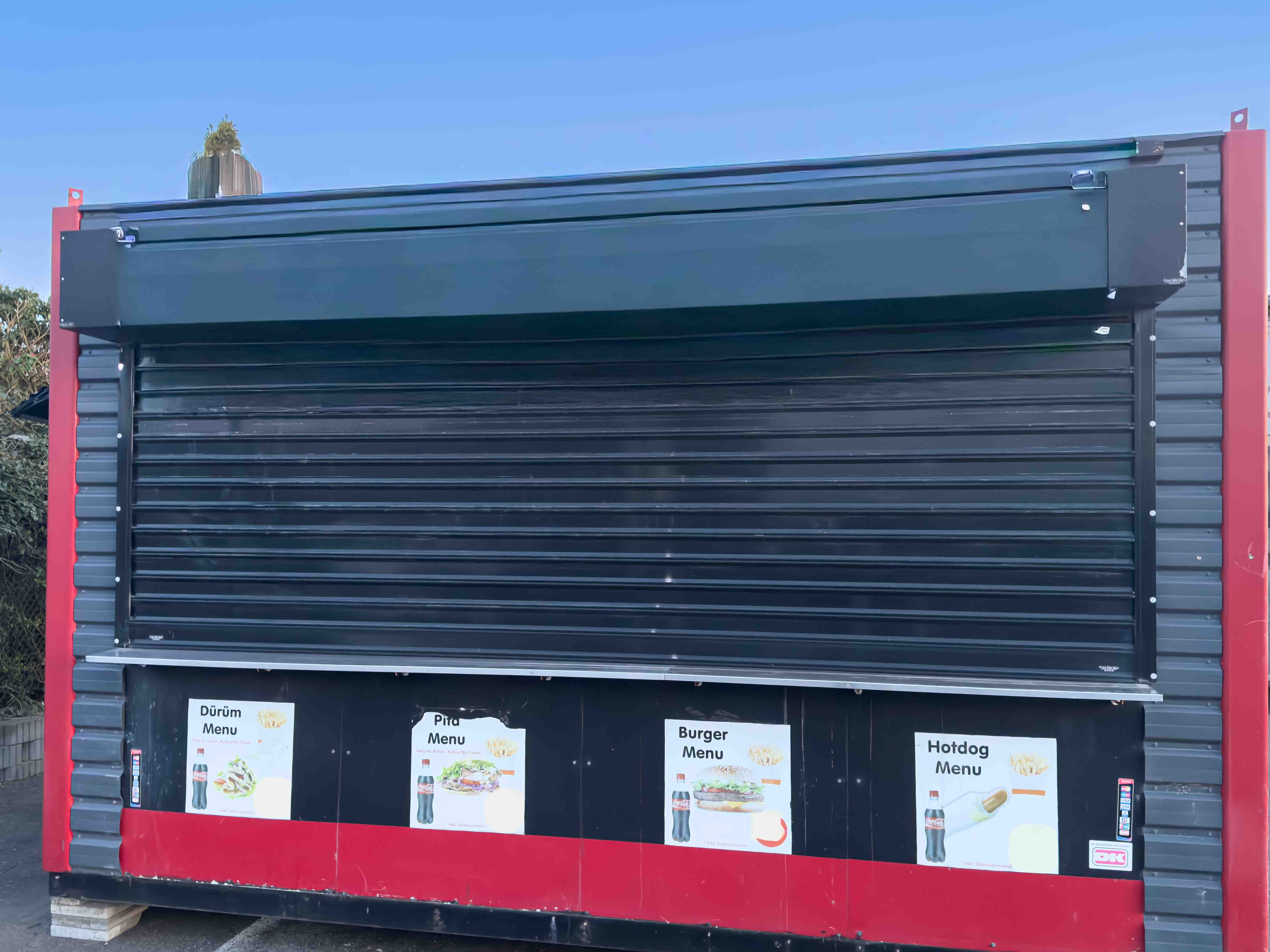 Flot Shwarma/Pizza/Sandwich flytbar hus/køkken og luge til at levere maden hen over til salg og lige til at åbne op på en ny lokation (NB Skal flyttes).