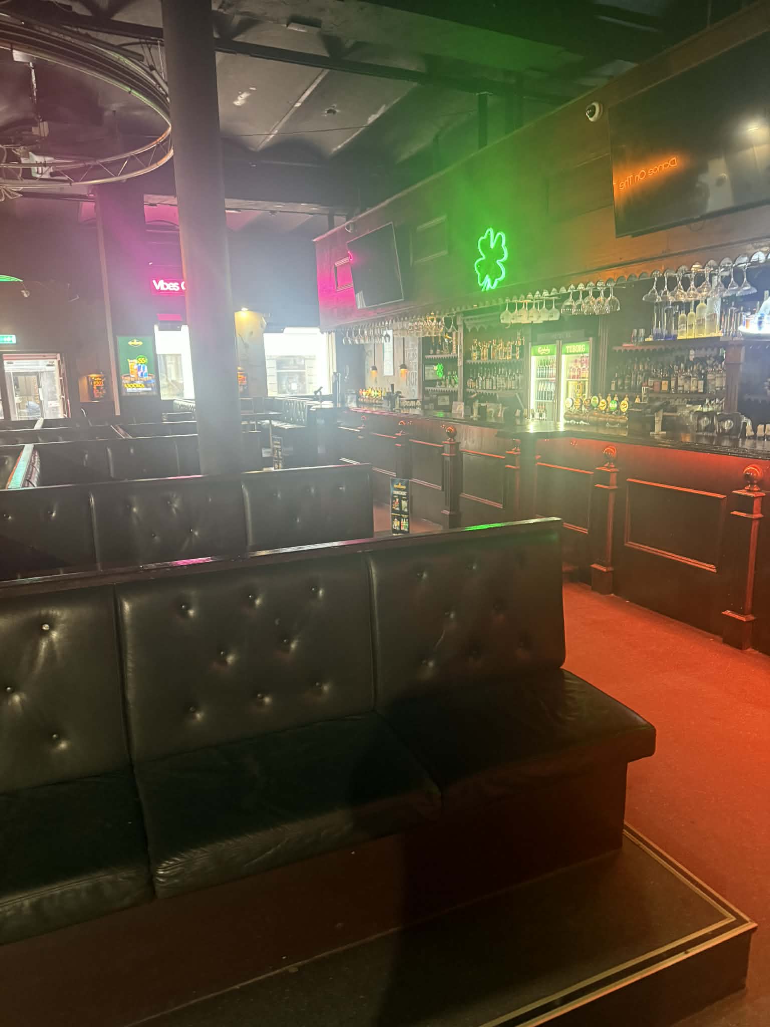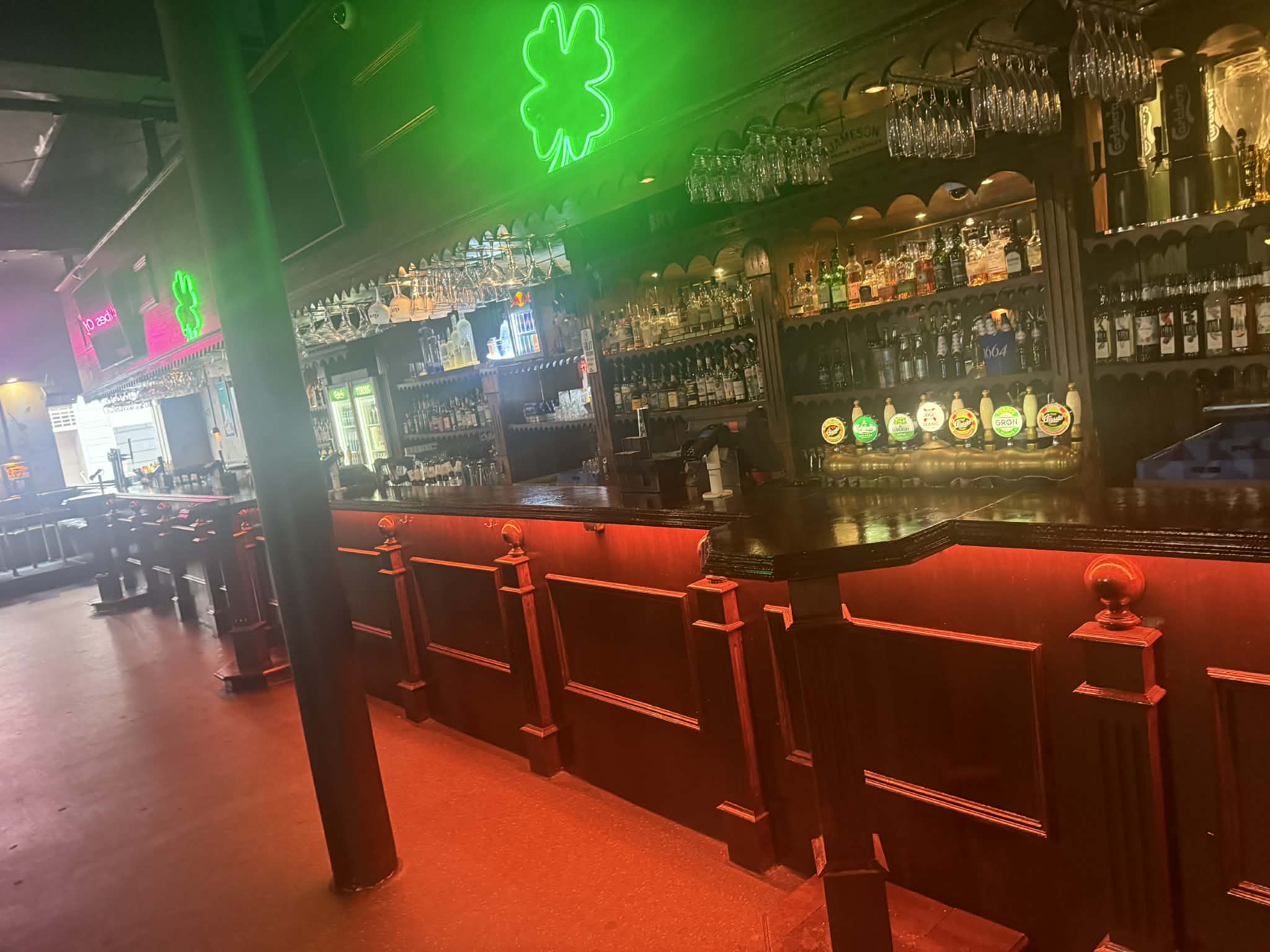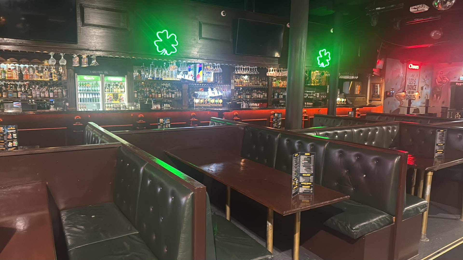 Fuldt indrettet Irish pub med autentisk atmosfære