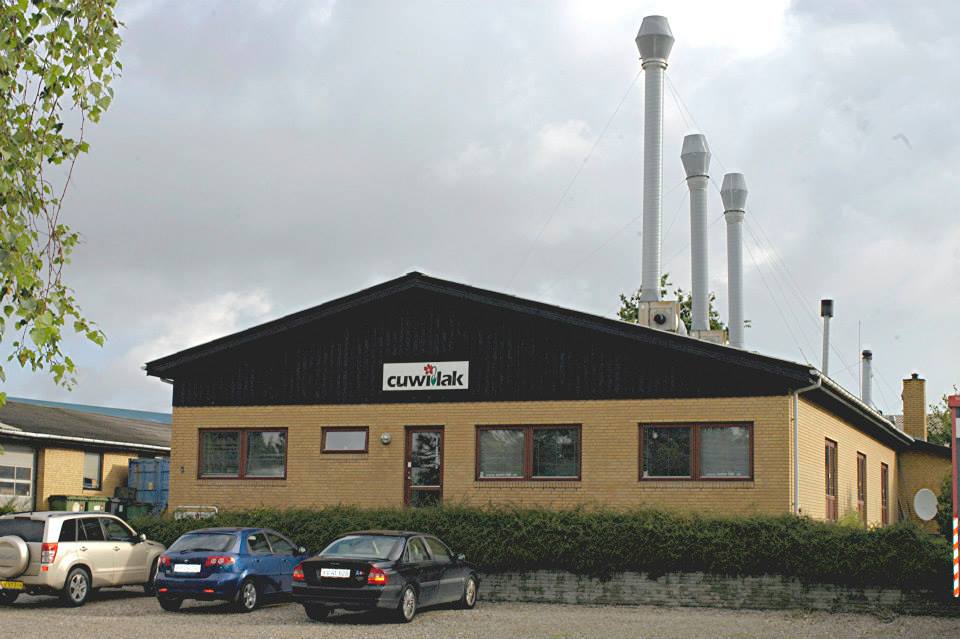 Stort brandsikkert lager med vådlakeringsprodukter og computer mixeanlæg