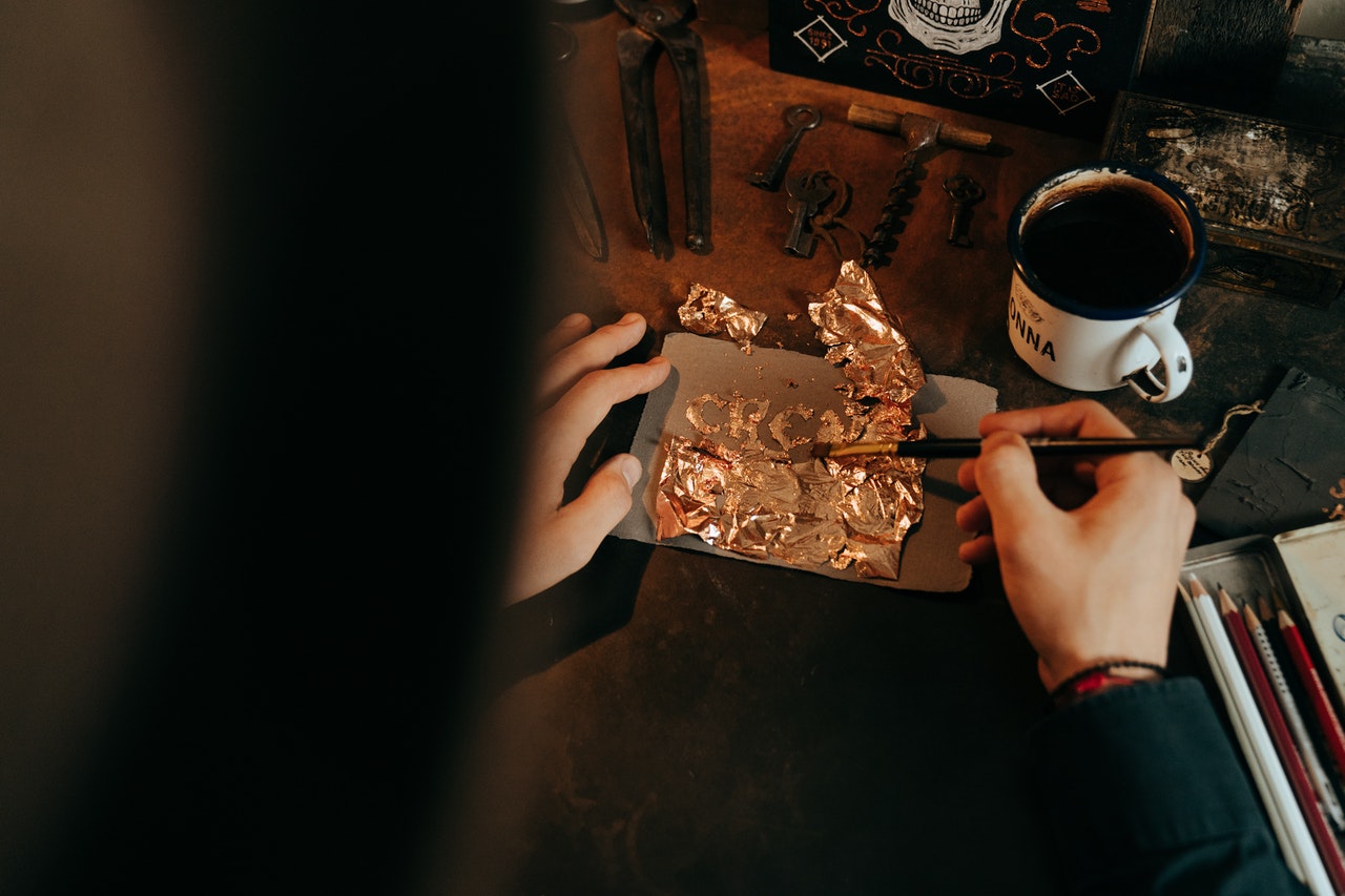 Normalt er det kun på andre metaller men kan forgylde, men her er der udstyr til at forgylde andre materialer som træ og plastik.