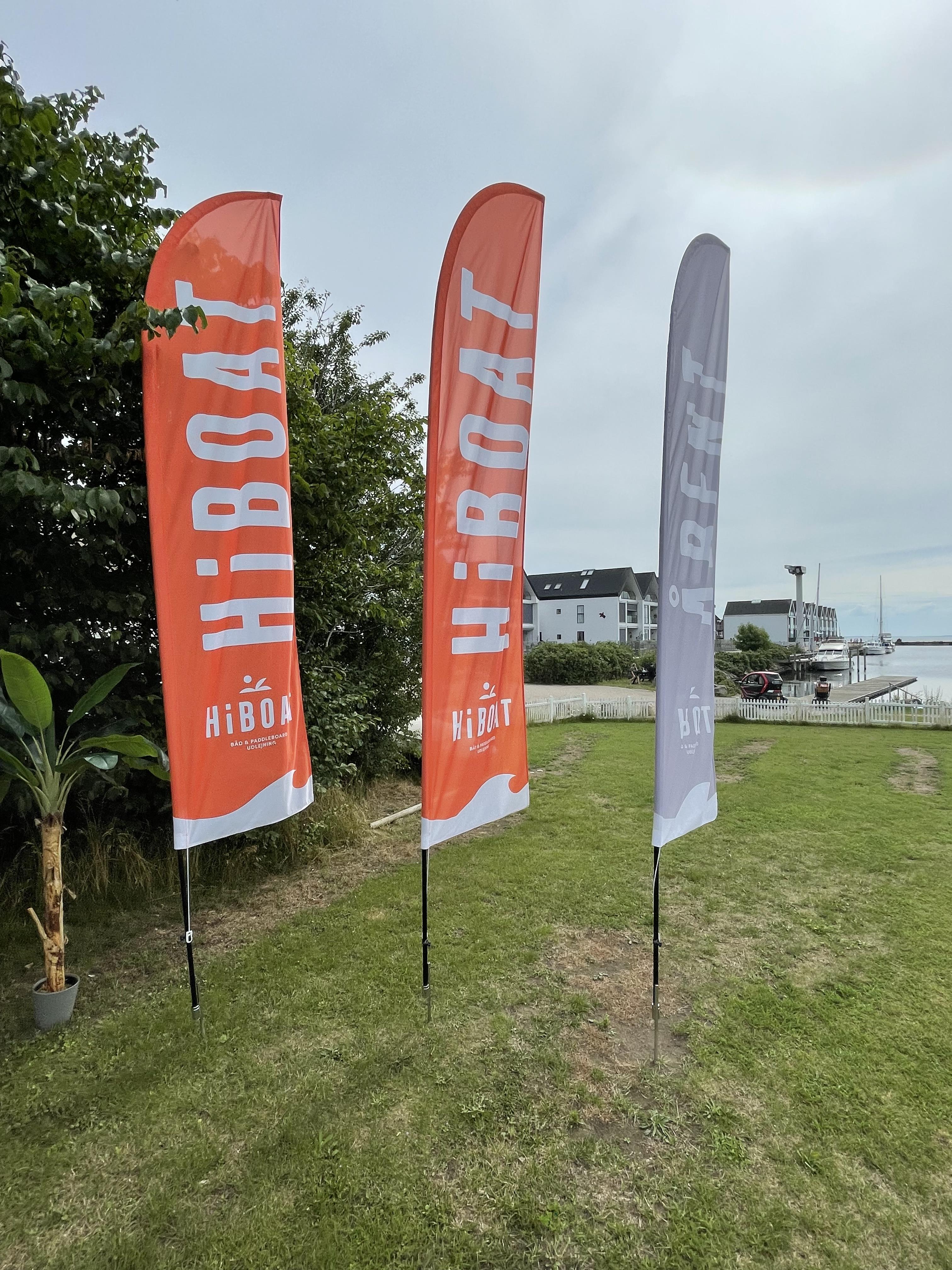 •4 stk Fiskestænger med spand til udlejning •3 stk Beachflag med logo 4m