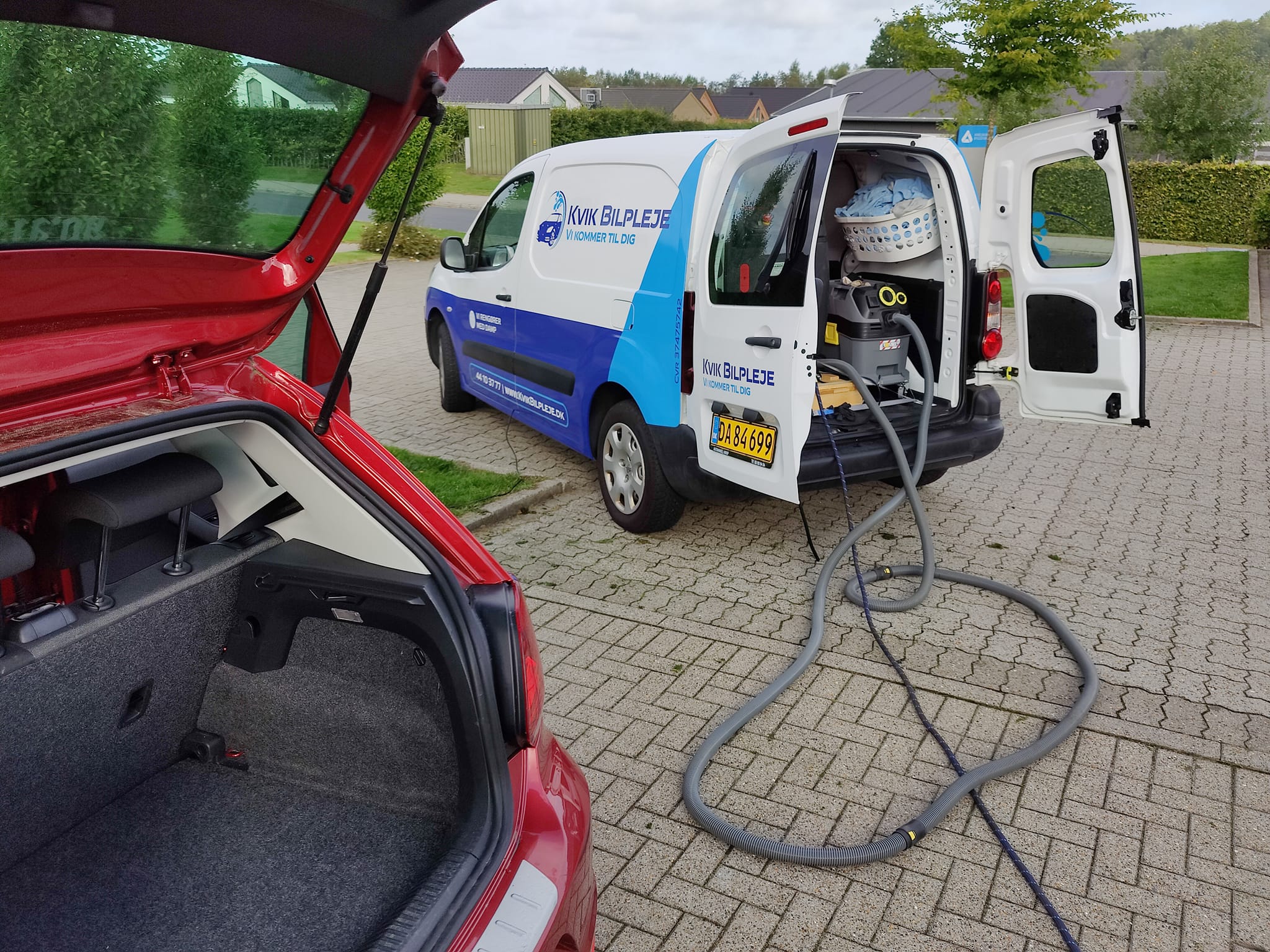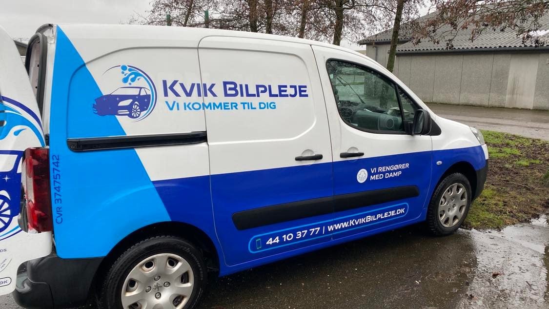 Kvik Bilpleje er et mobilt bilrengøringsfirma som kører ud til kunder og ordner biler indvendig og udvendig. Varebilen har et komplet setup med steamer, industristøvsuger samt alle de materialer og artikler der skal bruges til at rengøre kundernes biler indvendig og udvendigt.