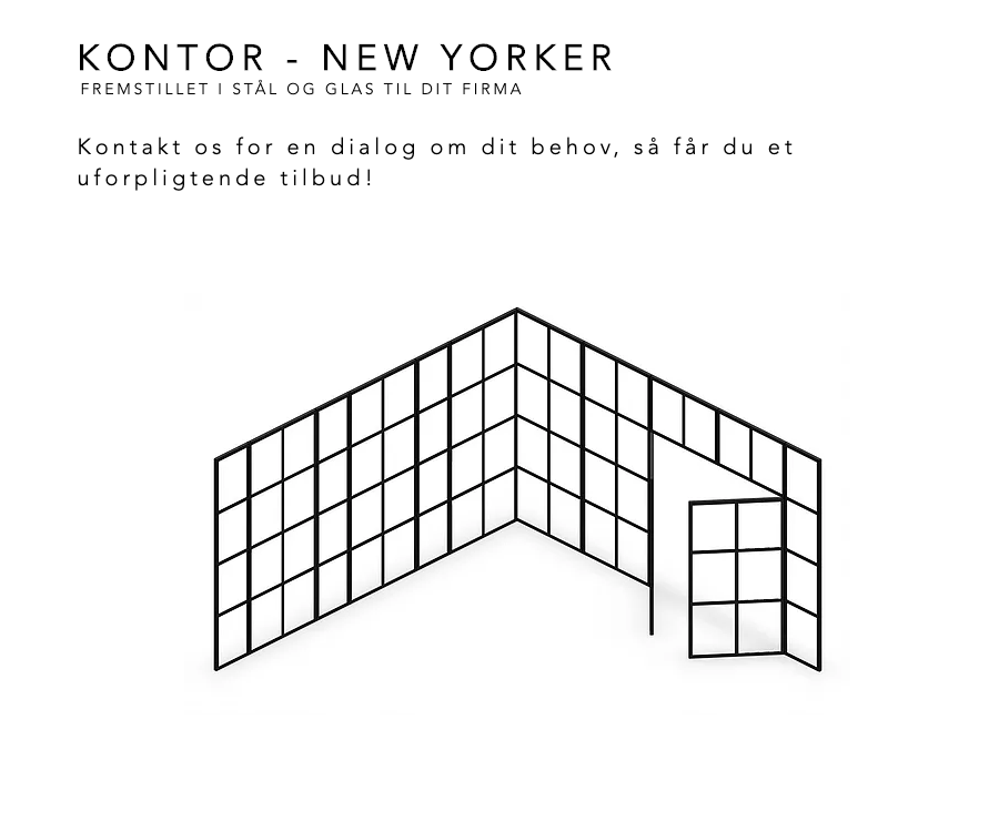 Virksomheden producere de moderne New yorker Glasvægge i stål, der pulverlakeres i sort, hvor der fuges glas i hvert felt.