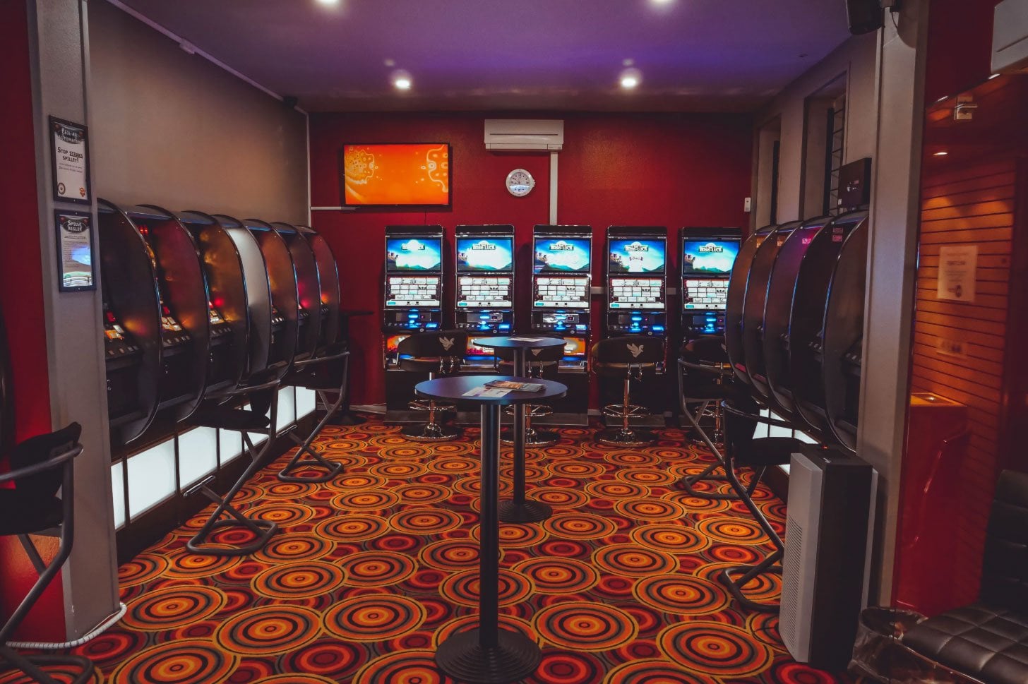 En stilfuld indretning med lounge møbler, Sonos højtalersystem, ipad med musik og tv styring, 20 spilleautomater, 27 fjernsyn, komplet alarmanlæg og overvågning.