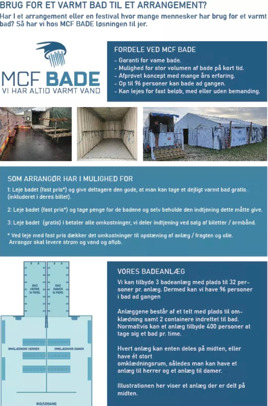 Udlejningsfirma med badefaciliteter til festivaler og mobil varmeanlæg - Søger partner - Roskilde, Smukfest, Nibe m.m.