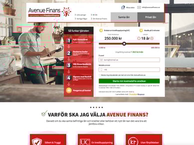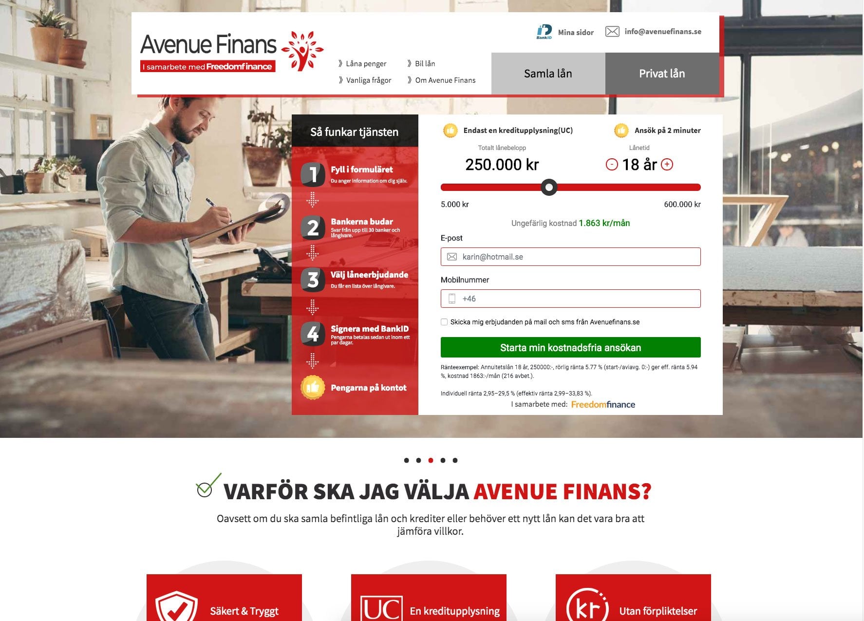 Avenuefinans.se markedsfører sammenligning af privatlån. Via én ansøgning på Avenuefinans.se,