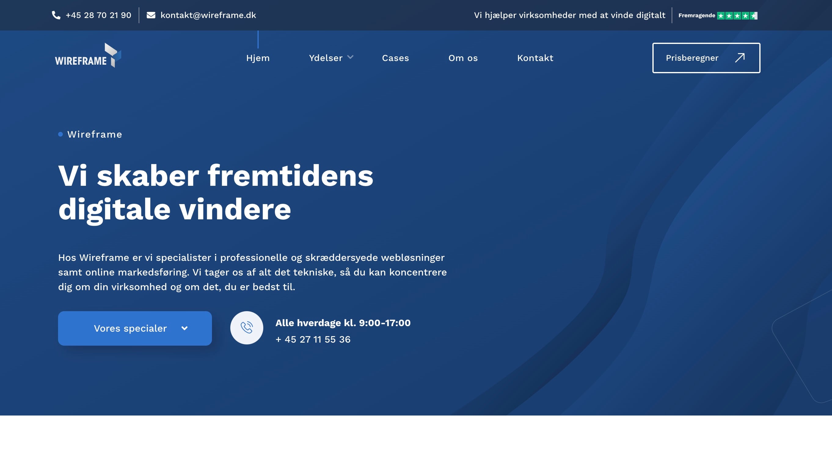 Hos Wireframe er vores helt store drivkraft at se virksomheder vokse, og vi bidrager hver dag til, at erhvervsdrivende får succes med det, de laver. Vi hjælper ambitiøse erhvervsdrivende med at nå deres mål, hvad enten det er i form af en hjemmeside, markedsføring eller en køreklar og brugervenlig webshop.