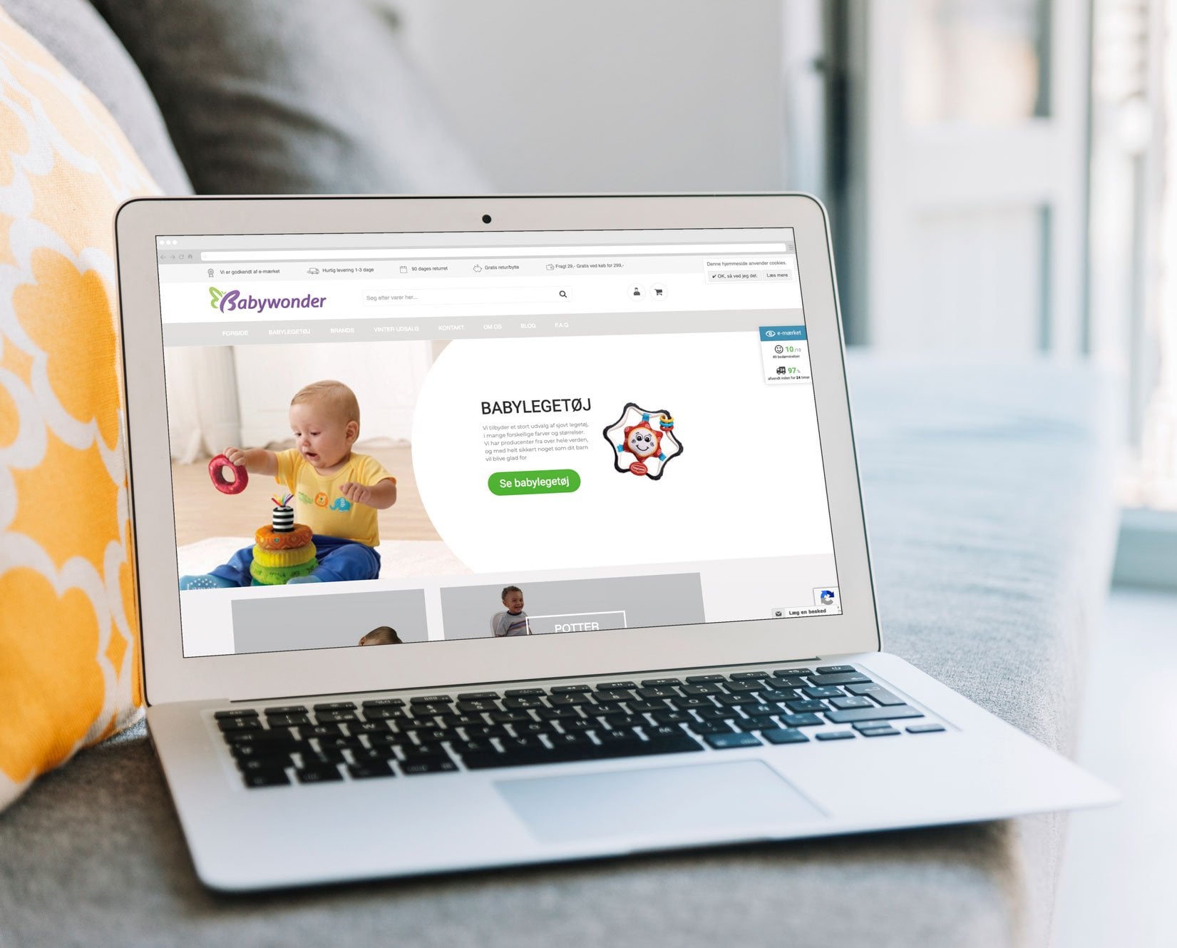 I sommer 2017 fik jeg så lavet en helt ny webshop igennem Salecto, som er et profesionelt firma, der har udviklet shoppen i deres eget system, som er bygget på et af verdens mest brugte webshop-platformer Magento, og står for den tekniske del. De får en månedlig betaling for ydelsen på ca. 1000 kr. inkl support. Dem vil jeg klart anbefale at bibeholde. De er knivskarpe til onsite SEO, så alene her kan du spare udgiften til andre dyre firmaer/webudviklere. Det skal siges at de ejer designet, men ikke navnet Babywonder.dk. Aftalen kan opsiges hurtigt, og så står det frit for sælger at lave sit eget site system.