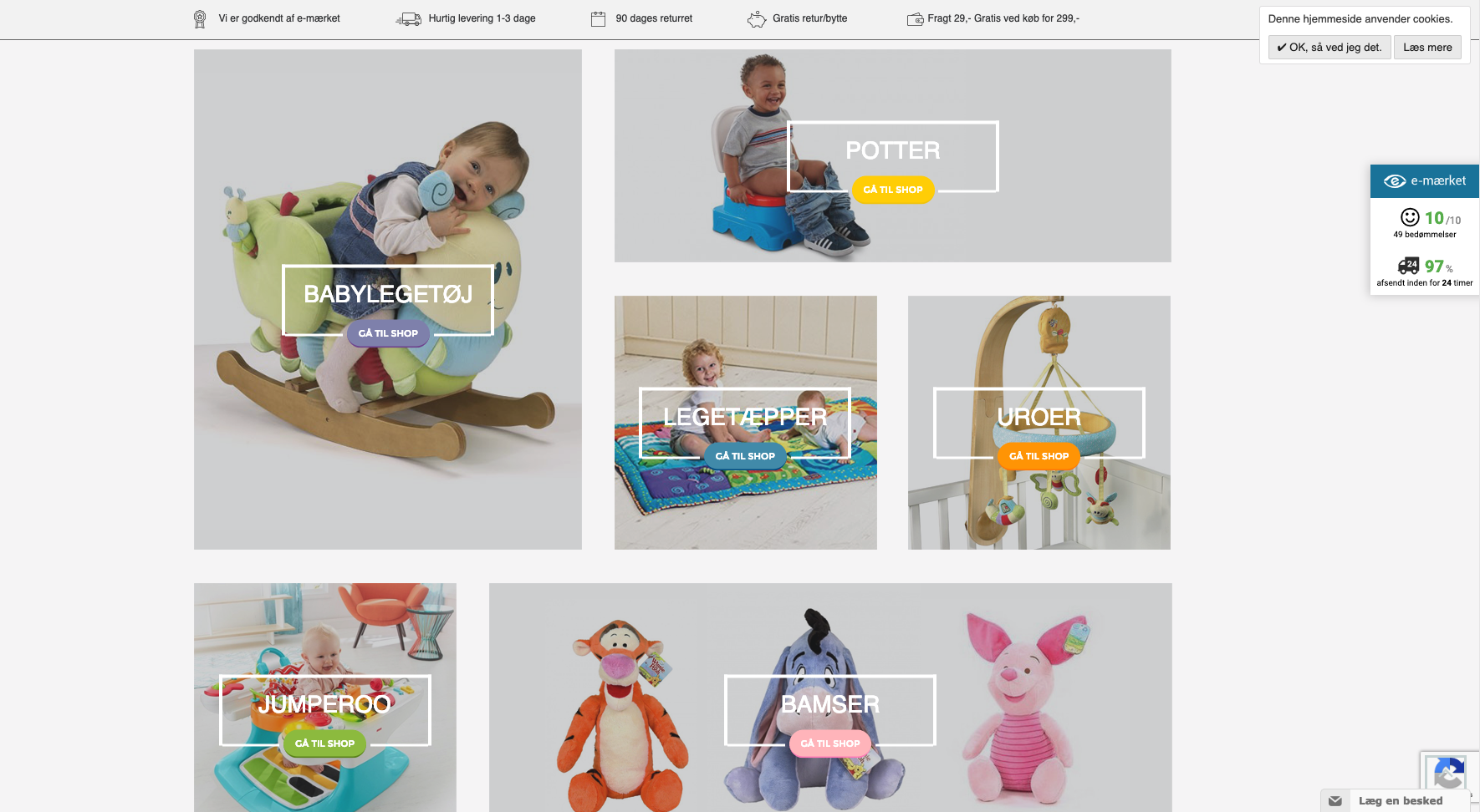 Webshoppen sælger kun babylegetøj til babyer fra 0-1 år. Vores priser er konkurrencedygtige. Vi sælger mærker som Tiny Love, Lamaze, Fisher Price og Disney.