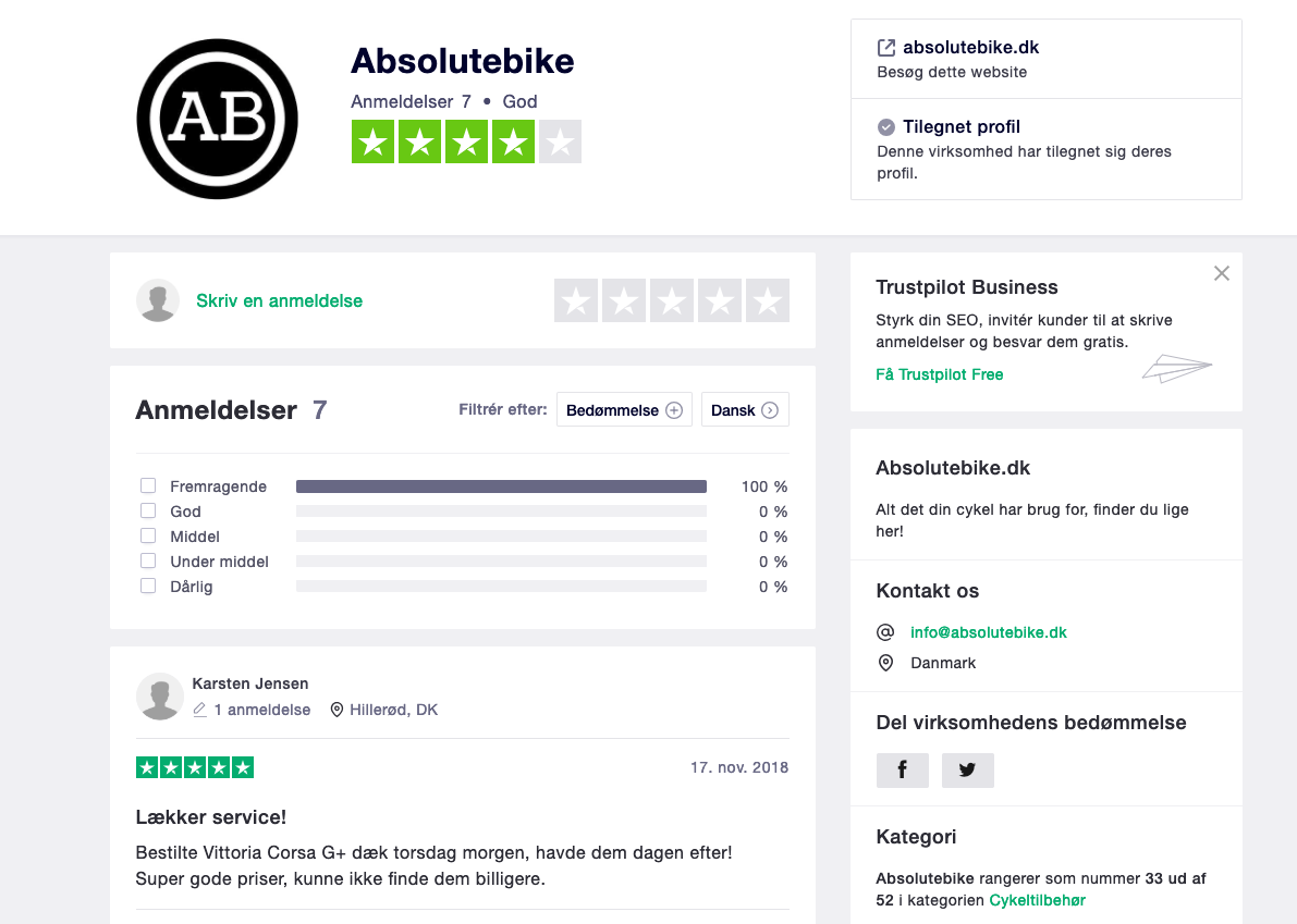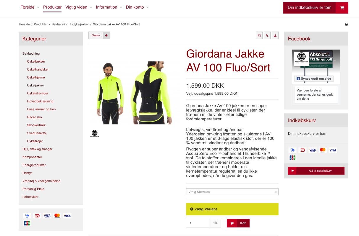 Absolutebike.dk - Webshop med cykeludstyr, tilbehør, beklædning, komponenter osv.
