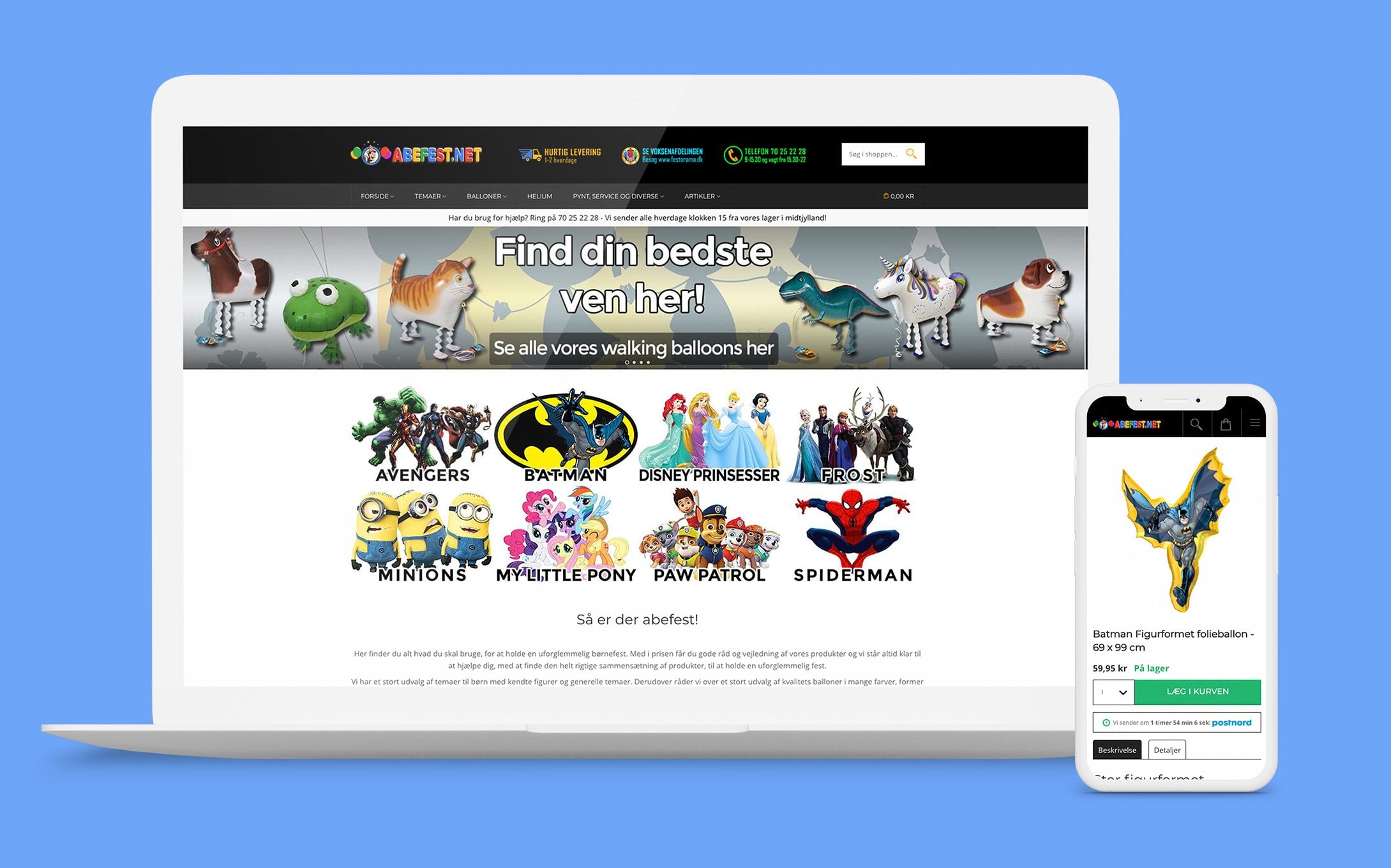 Webshoppen sælger blandt andet festtemaer som for eksempel Barbie, Politi, Ridder og mange flere. Der er temaer til børn i alle aldre.