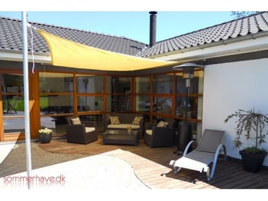 Vi hjælper vores kunder med at sidde sikkert i skyggen på deres terrasse, uden at tage skade af solens farlige UV stråler, da alle vores solsejl er certificeret og UV behandlet