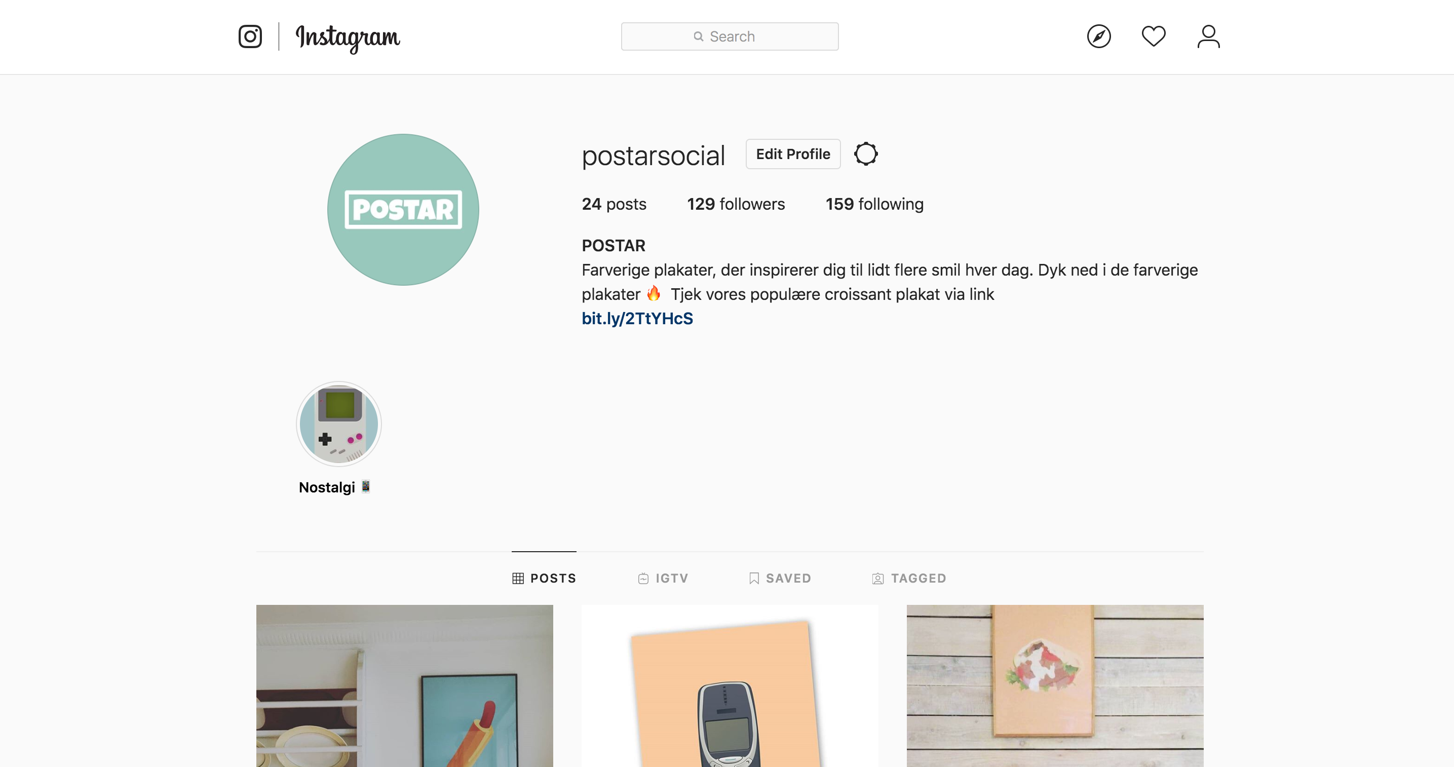 Postar.dk - Plakat koncept til salg med tilhørende sociale medier og webshop.