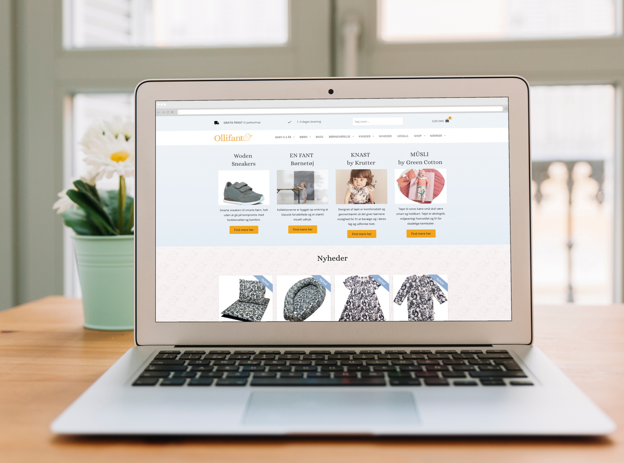 Ollifant.dk er en meget populær og velkendt webshop der sælger børnetøj og tilbehør. Shoppen har i marts fået helt ny hjemmeside, og er flyttet fra gammel Magento platform til ny WordPress platform med webshoppen lavet i WooCommerce.