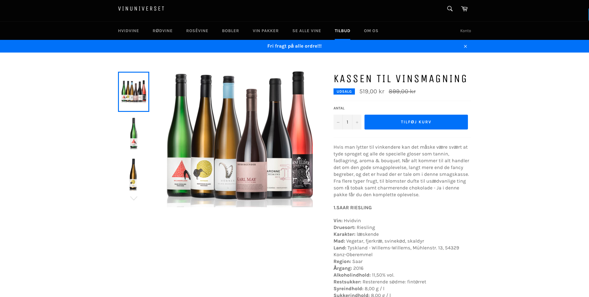 Foruden de mange pakker, har shoppen et væld af spændende vine der selvfølgelig kan købes individuelt og endda blandes med køb af kun én af hver flaske, dette sikrer at du som kunde frit kan sammensætte DIN yndlingspakke / ordre.