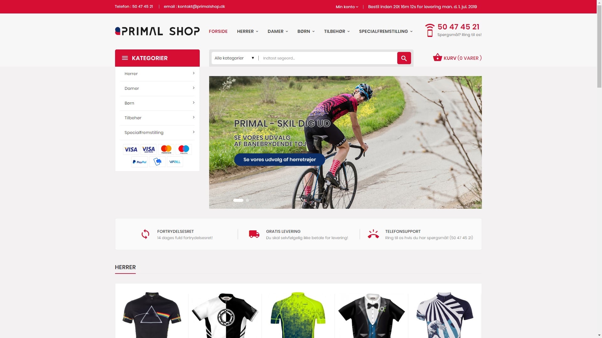 Primalshop.dk er en webshop som beskæftiger sig med salg af cykeltøj både off the rack og specialfremstillet. Siden er optimeret til at acceptere de fleste gængse kort samt Mobilepay.