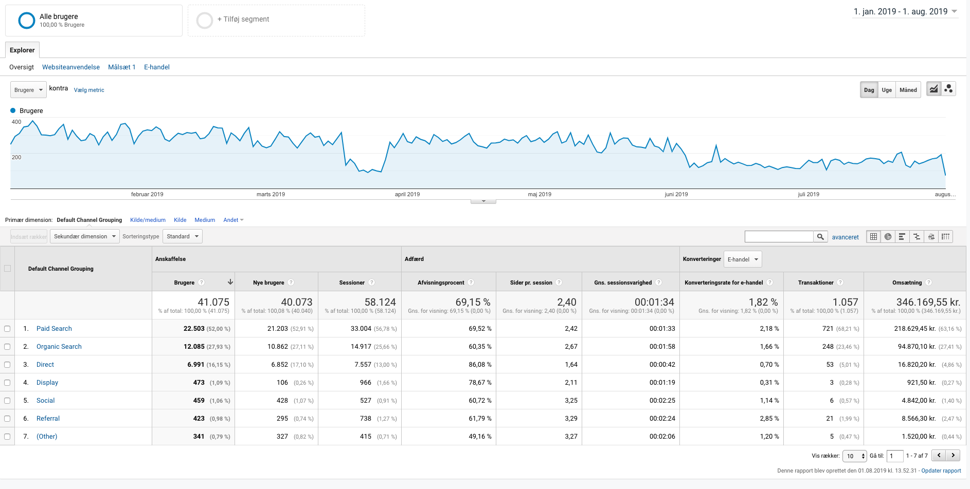 Trafik i tal (1. jan. 2019 - 1. aug. 2019)
