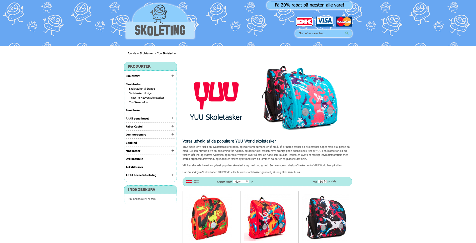 Siden er opbygget til, at sælge alt man skal bruge i til skolen, hvad enten det er blyanten, skoletasken eller madkassen.