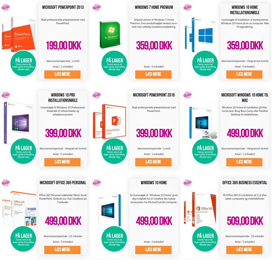 Der er lavet forhandler aftaler med alt fra BullGuard, Adobe, Norton Symantech, Kaspersky, Avg, avast mm. Derudover har vi samarbejdsaftaler med de største distributører i nord europa.