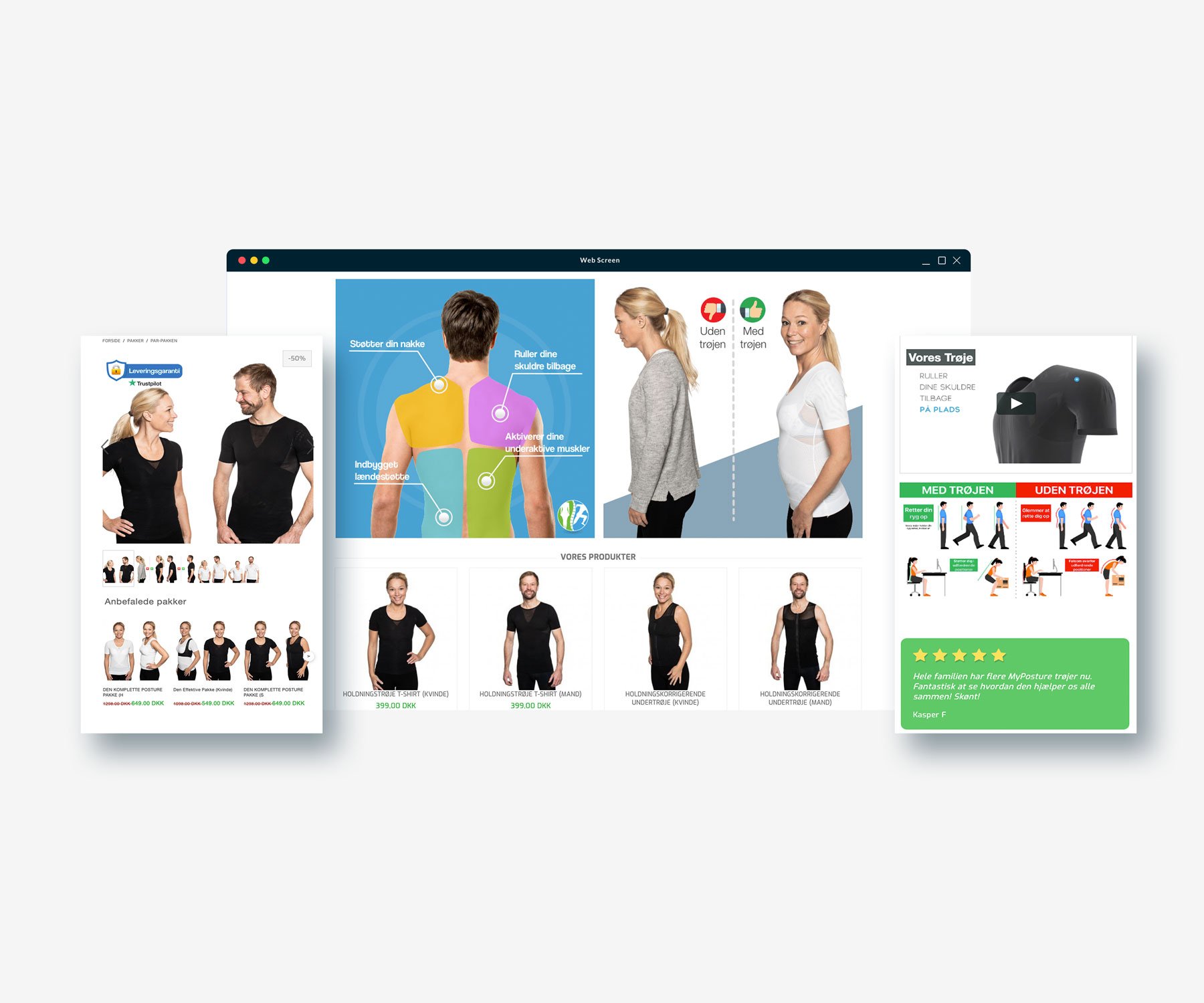 Holdningstøj kan være dyrt, men det har vi lavet om på. Vores produkter leverer holdningskorrigerende tøj til Danmarks skarpeste priser. Vi ønsker at det skal være et let tilgængeligt produkt for alle i Danmark.