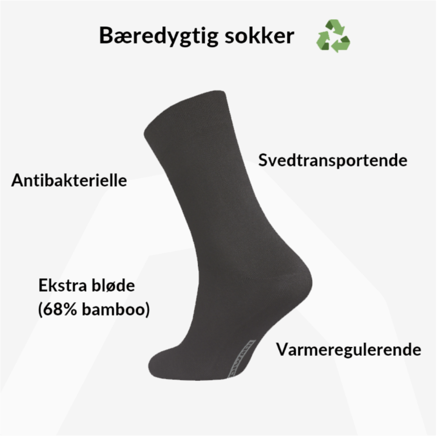 Strømperne er lavet af bambus, som er et fantastisk materiale. De er bla. svedtransperante og Antibakterielle.