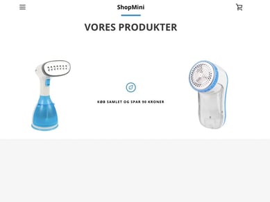 ShopMini, sælger primært 2 produkter, i samme produktkategori. På siden er der oprettet 2 produkter - MiniFuzz og MiniSteamer. MiniFuzz er en elektrisk fnugrulle, som gør det muligt for konsumenten at udskifte den kedelige og originale fnugrulle, med en lidt sjovere elektrisk fnugrulle der er brugbar så lang tid kunden ønsker. Derudover sælges der også MiniSteamer, som er en håndholdt tøjdamper, der er kompatibel til at tage med i kufferten, så kunden kan have den med på farten.