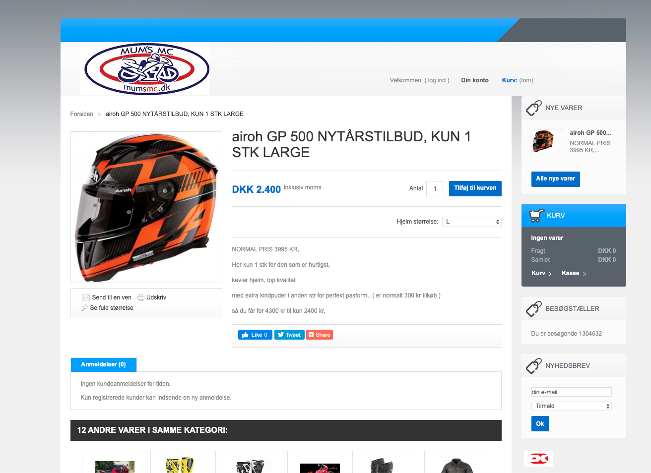 mumsmc.dk - Motorcykel og udstyr webshop med kvalitets produkter - Omsætning på ca. 200.000 kr. 2019