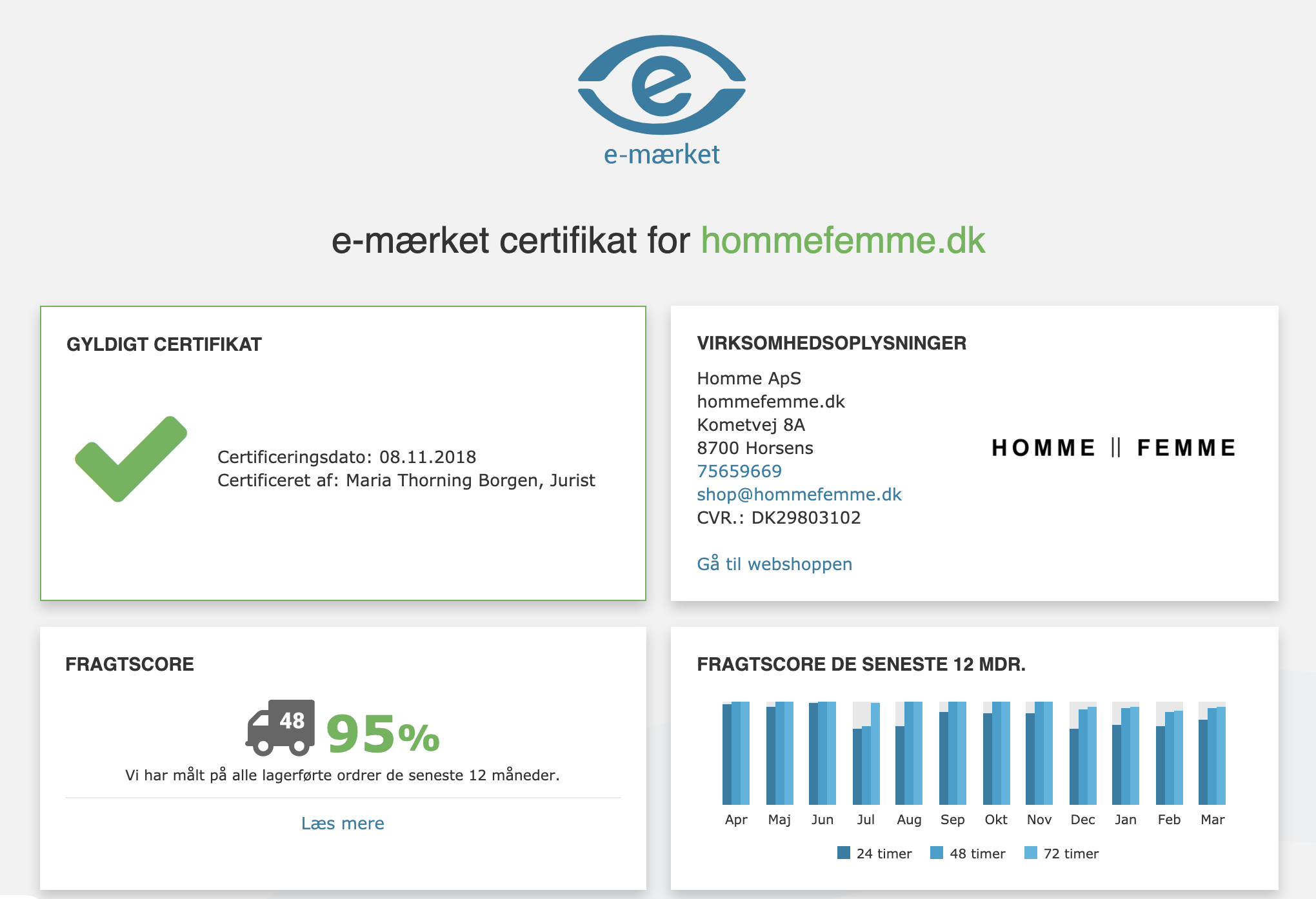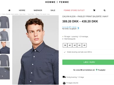 hommefemme.dk er en veletableret high end tøj hjemmeside, som er velfungerende, og med høj rating indenfor god service, samt vi er kendt for dag til dag levering. Vi har rigtig mange faste stamkunder, og derudover har vi fået opbygget en stort kundekartotek på 7000 kunder.