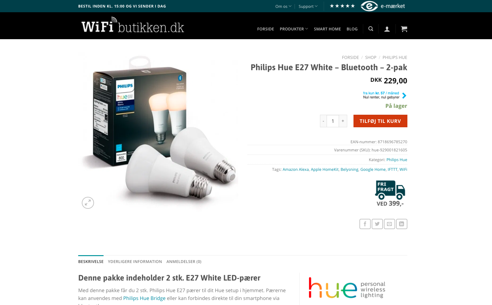 WiFi-butikken.dk sælger mange at de kendte brands, som Philips Hue, Netatmo, Danalock, SACKit og mange flere.