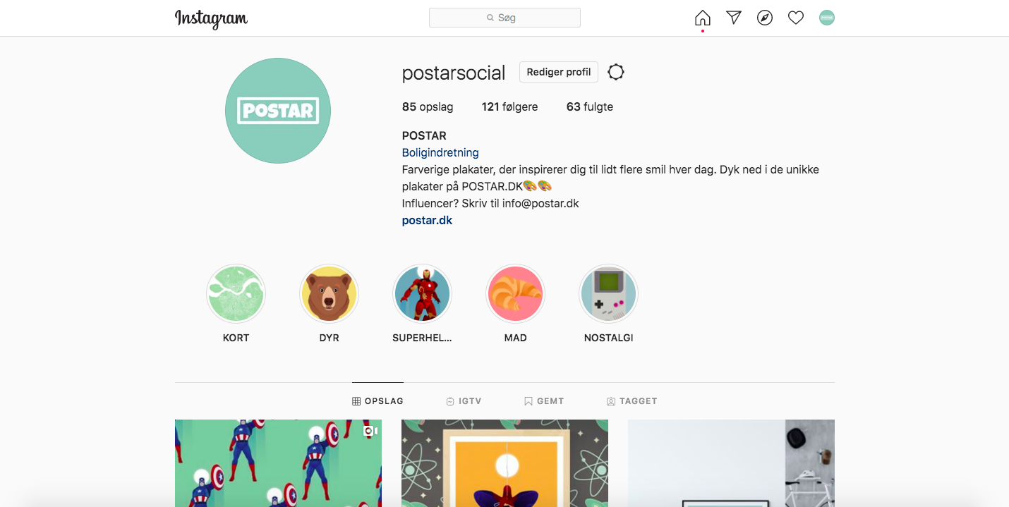 Postar.dk - Plakat koncept til salg med tilhørende sociale medier og webshop.