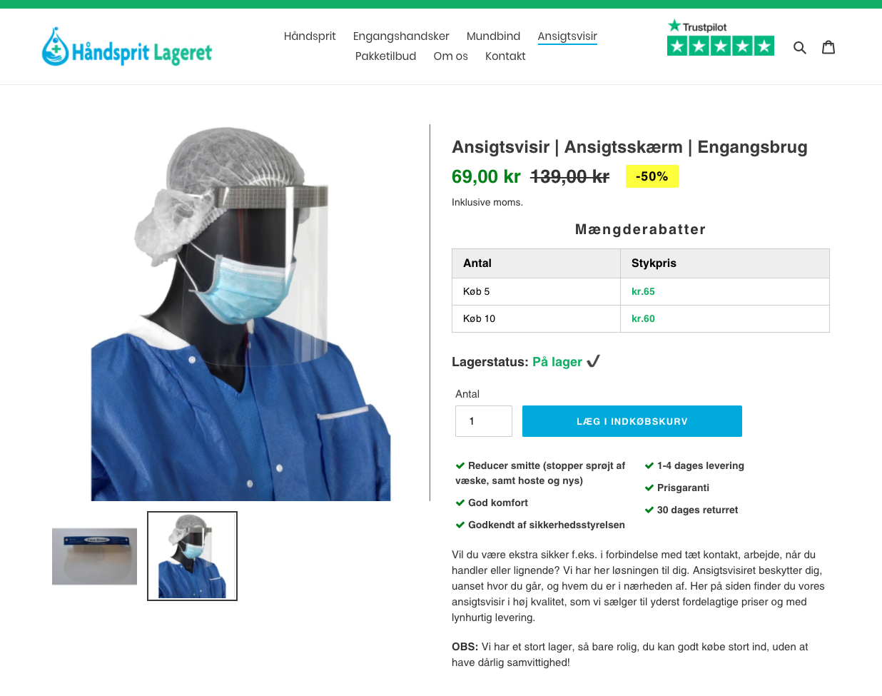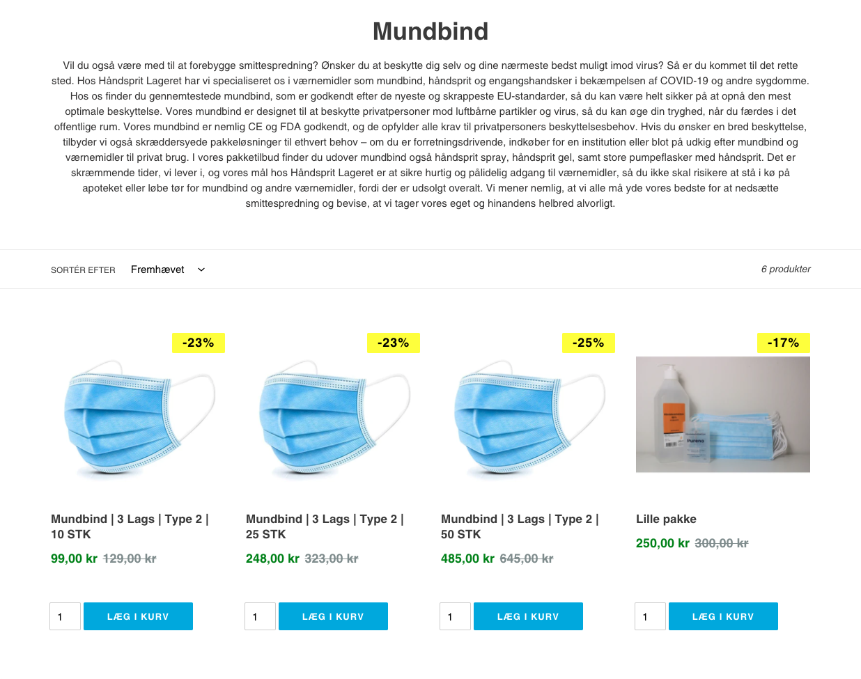 Som beskrevet først i opslaget, så stiftede vi Håndsprit Lageret, da der var et mangel på kvalitets værnemidler til billige priser og det er lige netop det vi tilbyder.