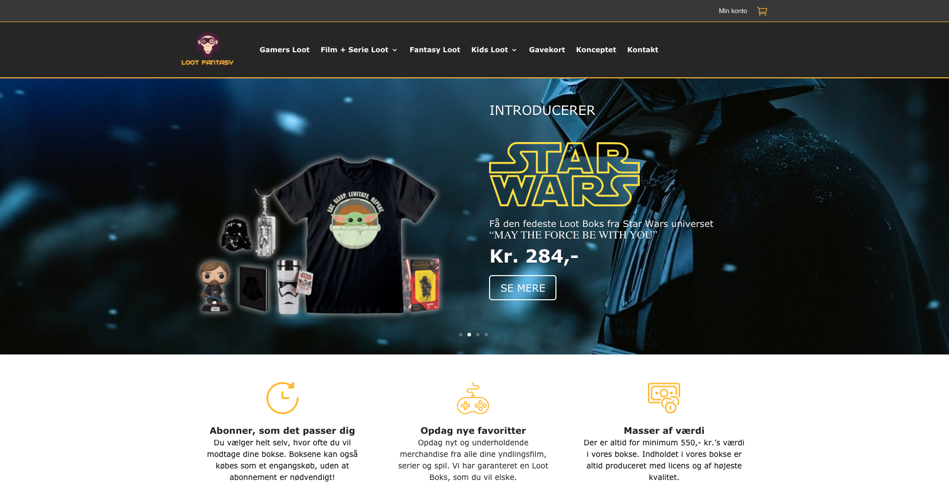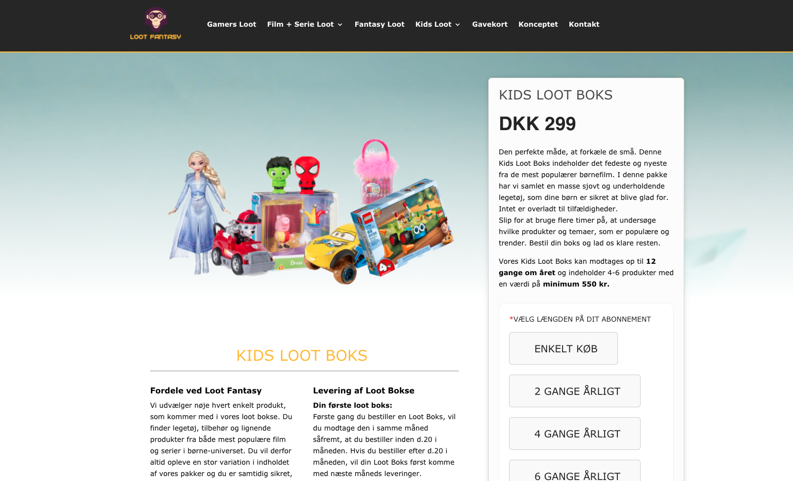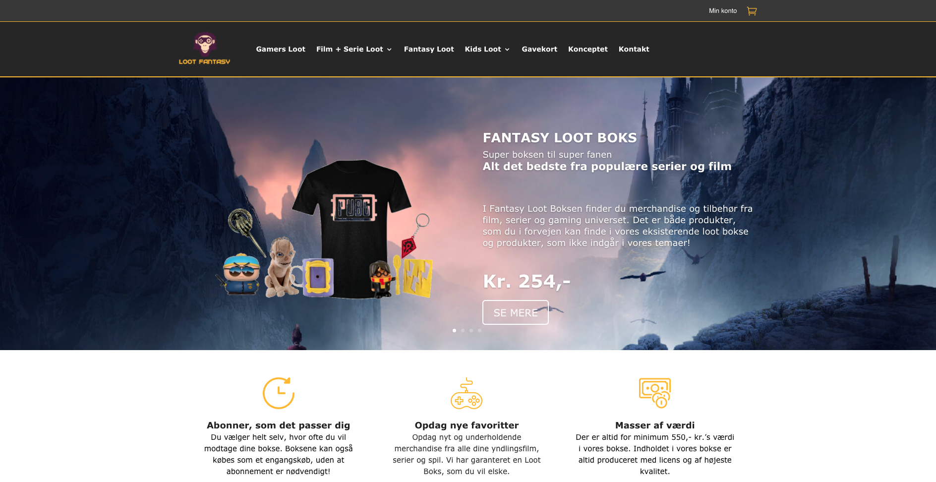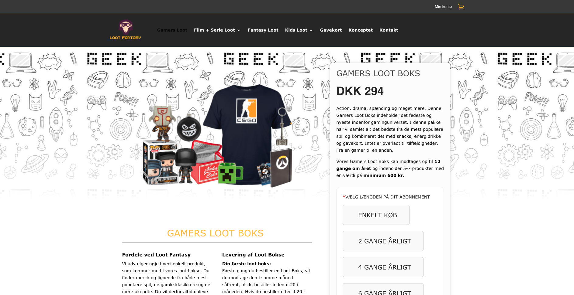 Vi har et hidtil ikke-set koncept, som har kæmpe succes i udlandet. Konceptet er rettet efter filmnørder og gamere. Produktet består af Loot Bokse fra forskellige film, serier og spil, som man kan abonnere på. Boksene kan også købes uden abonnement som et enkeltkøb hvis det ønskes. Boksene indeholder merchandise, tilbehør, figurer, beklædning og meget mere fra de forskellige teamer, som man vælger. Boksene kan modtages i et selvvalgt interval.