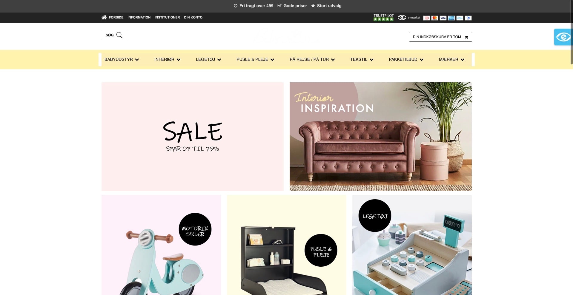Webshop med børne interiør, legetøj og udstyr - Inkl. varelager