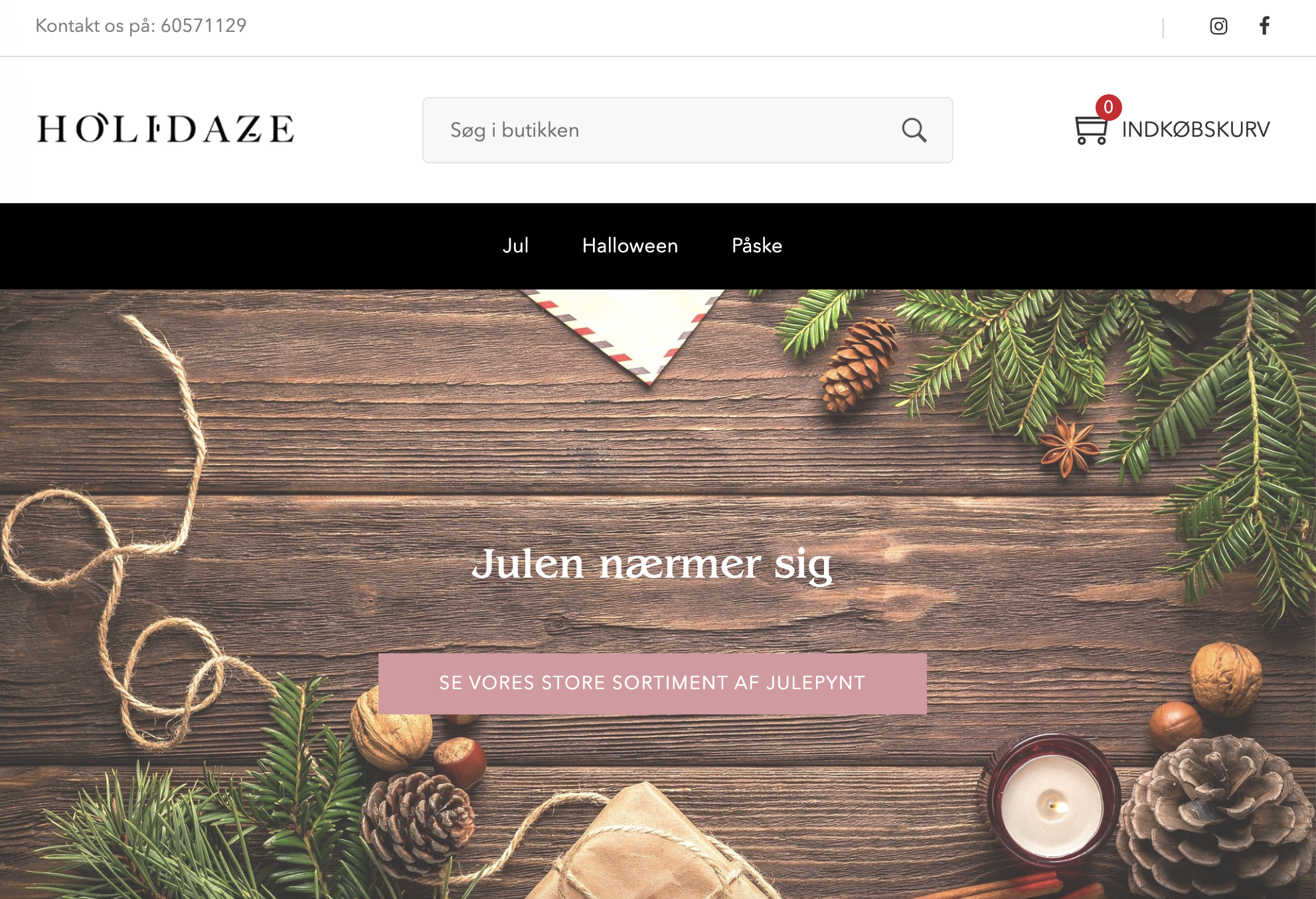 Her er en køreklar webshop www.holidaze.dk, hvor alt det kedelige og tidskrævende grundarbejde er lavet for dig.